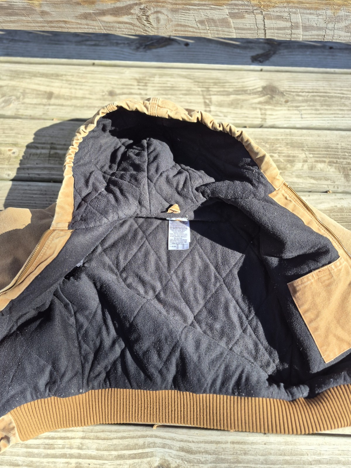 Vtg Distressed Carhartt YYJ130 BRN Jacket Quilt Lined Youth Sz 8 M Hooded Brown