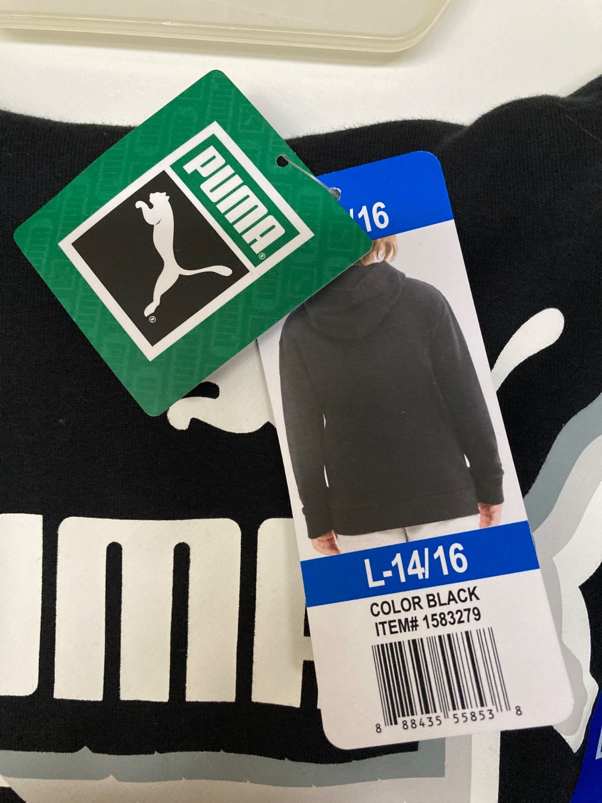 youth puma hoodie, black, size large, NWT
