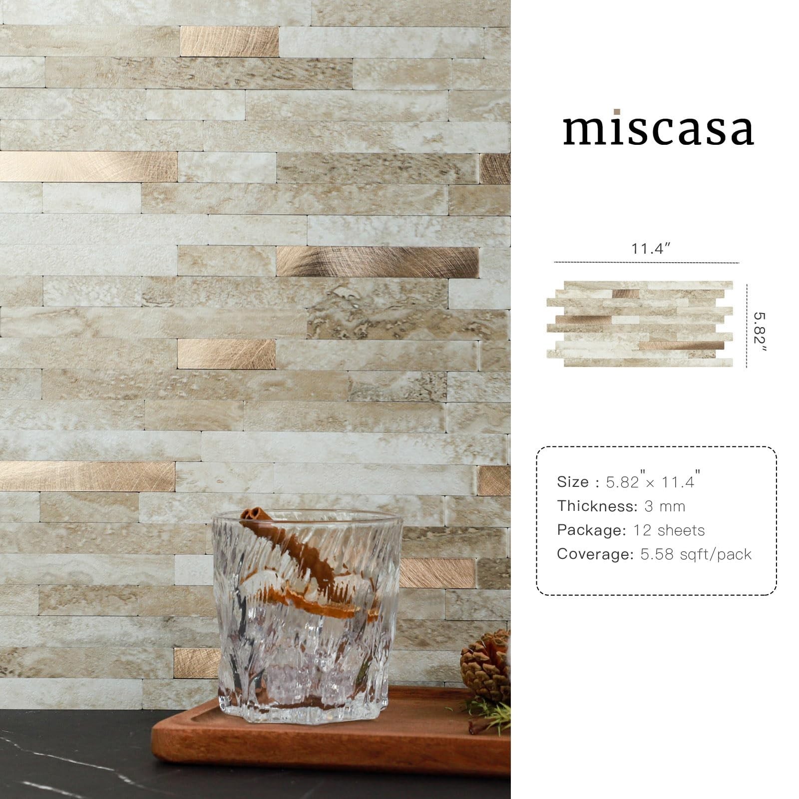 12-Sheet Peel and Stick Backsplash Stone Tile -5.82 215;11.4 Self Adhesive Go