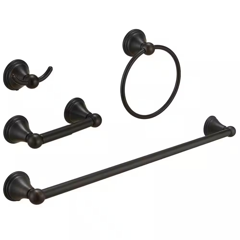 4-Piece Bath Hardware Set with Towel Bar Towel Hook Toilet Paper Holder and Towe