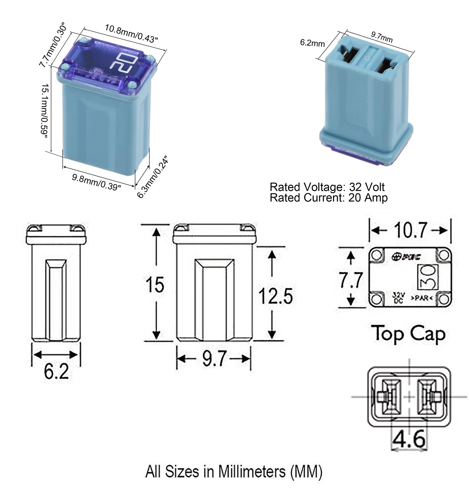 10Pack 20A Car Micro Cartridge Fuses Micro Fuse FMM Mcase Micro Female Fuses NEW