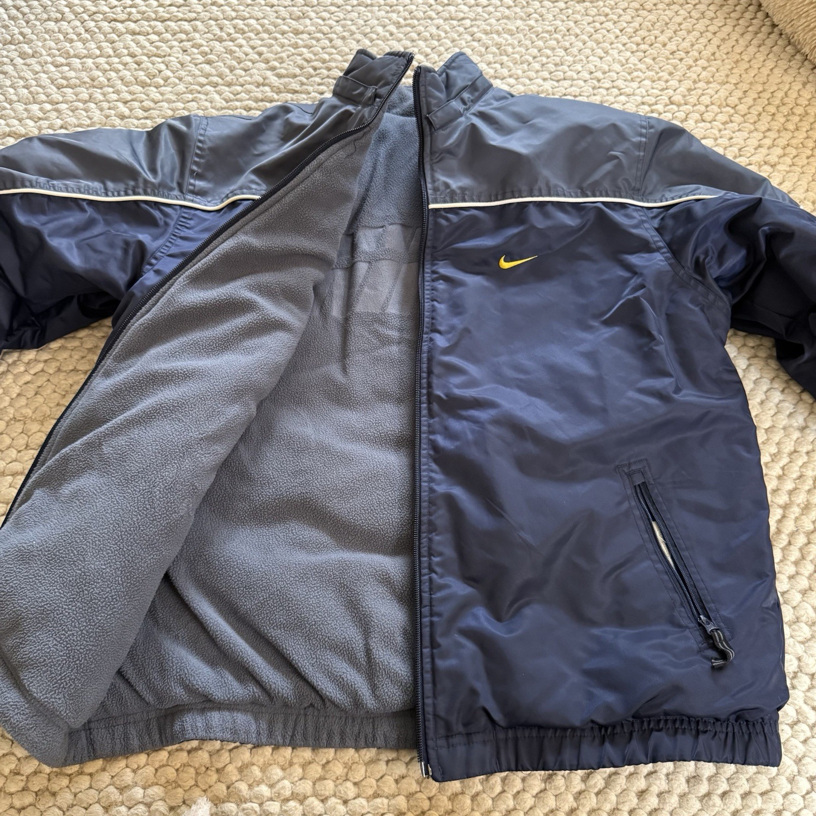 Vintage Nike Jacket Youth Large 14-16 Blue Gray Reversible Swoosh Logo 90s Y2K
