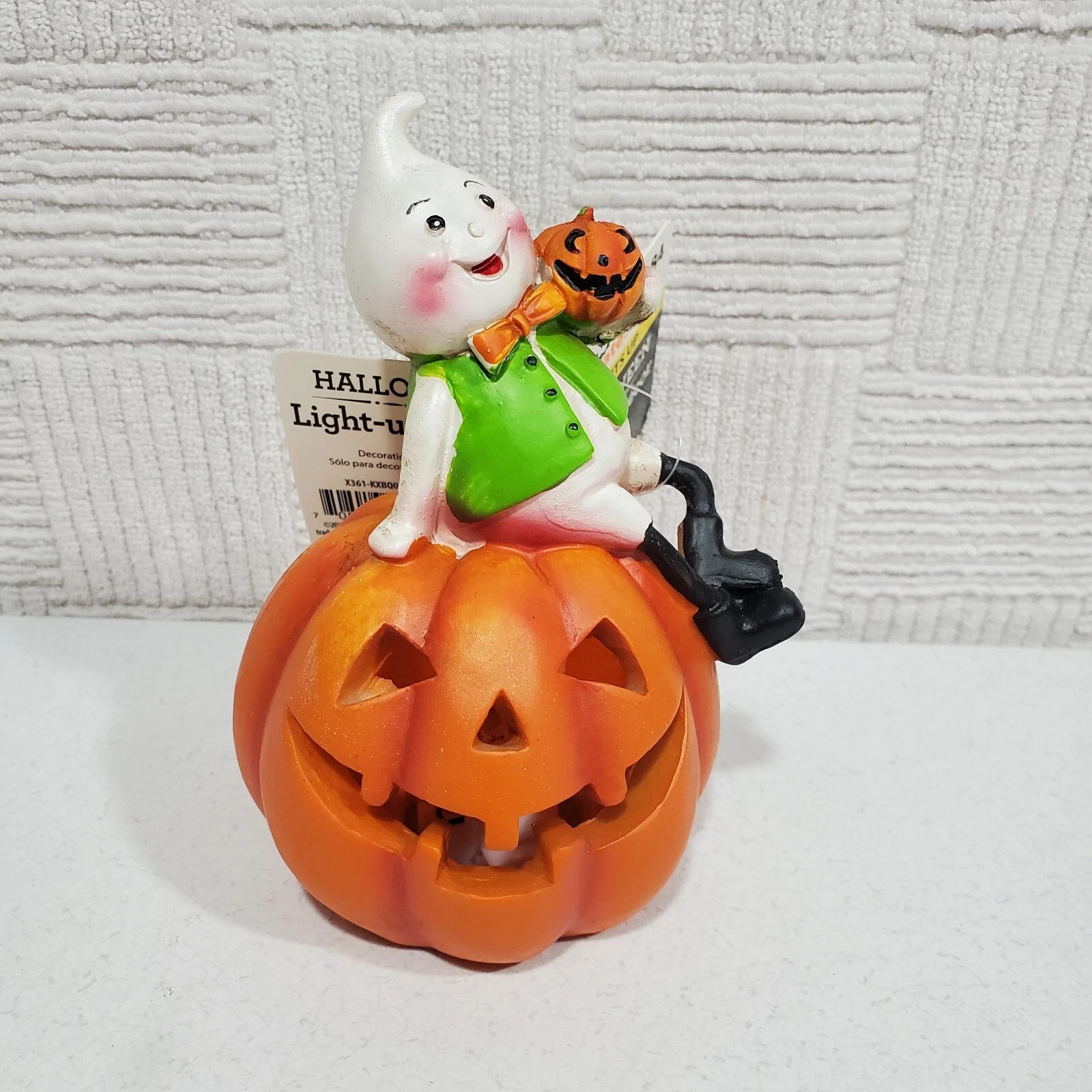 как выглядит Light Up Ghost On Jack-o -Lantern Pumpkin 5 Halloween Decoration Resin Figure фото
