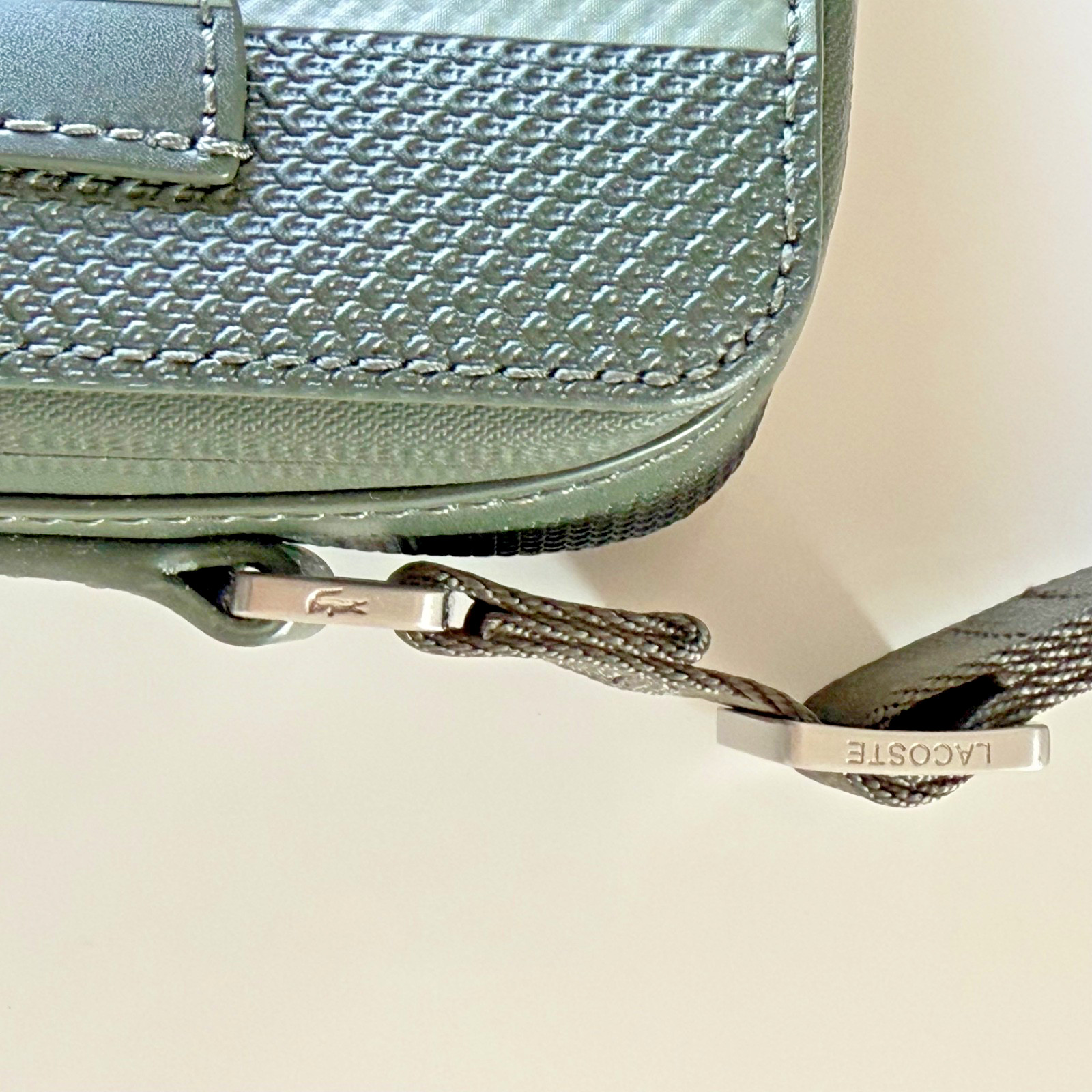 • Authentic Lacoste Men's Green Textured Leather Crossbody Messenger Shoulder Bag