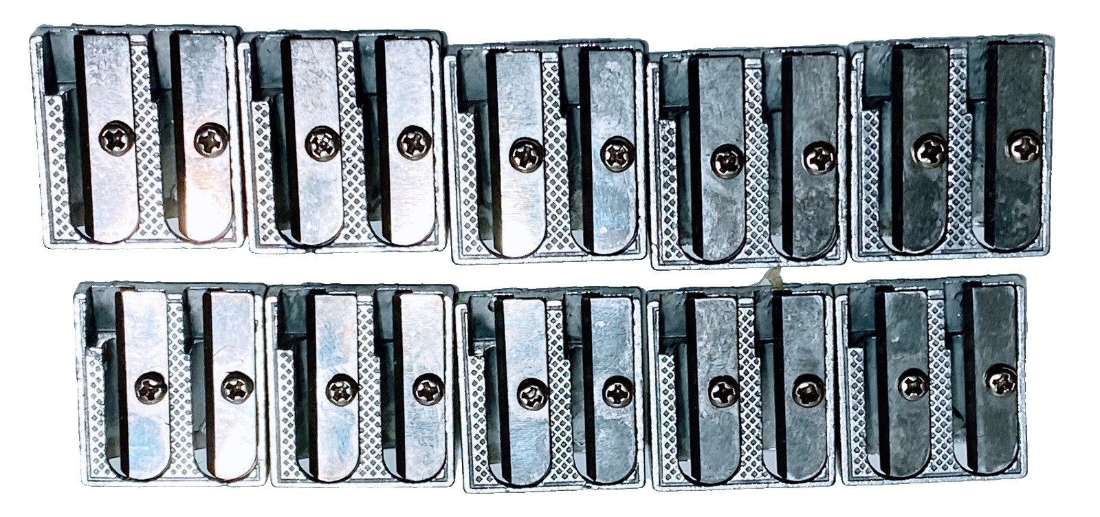 Lot of 10 2-Hole Pencil Sharpener Metal Dual Blades 2 Different Sizes of Pencils