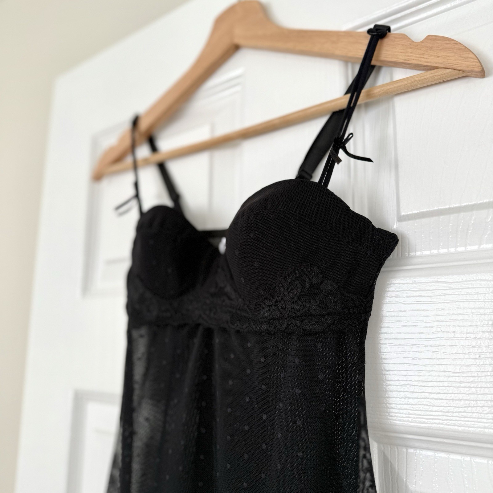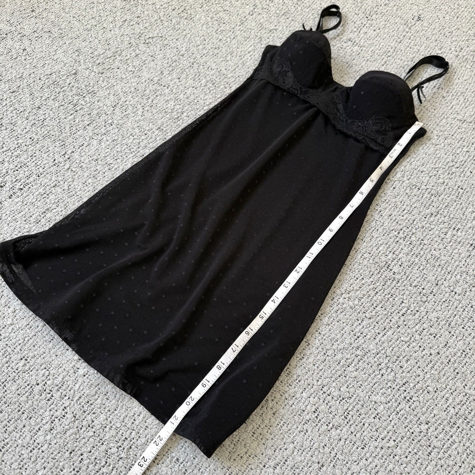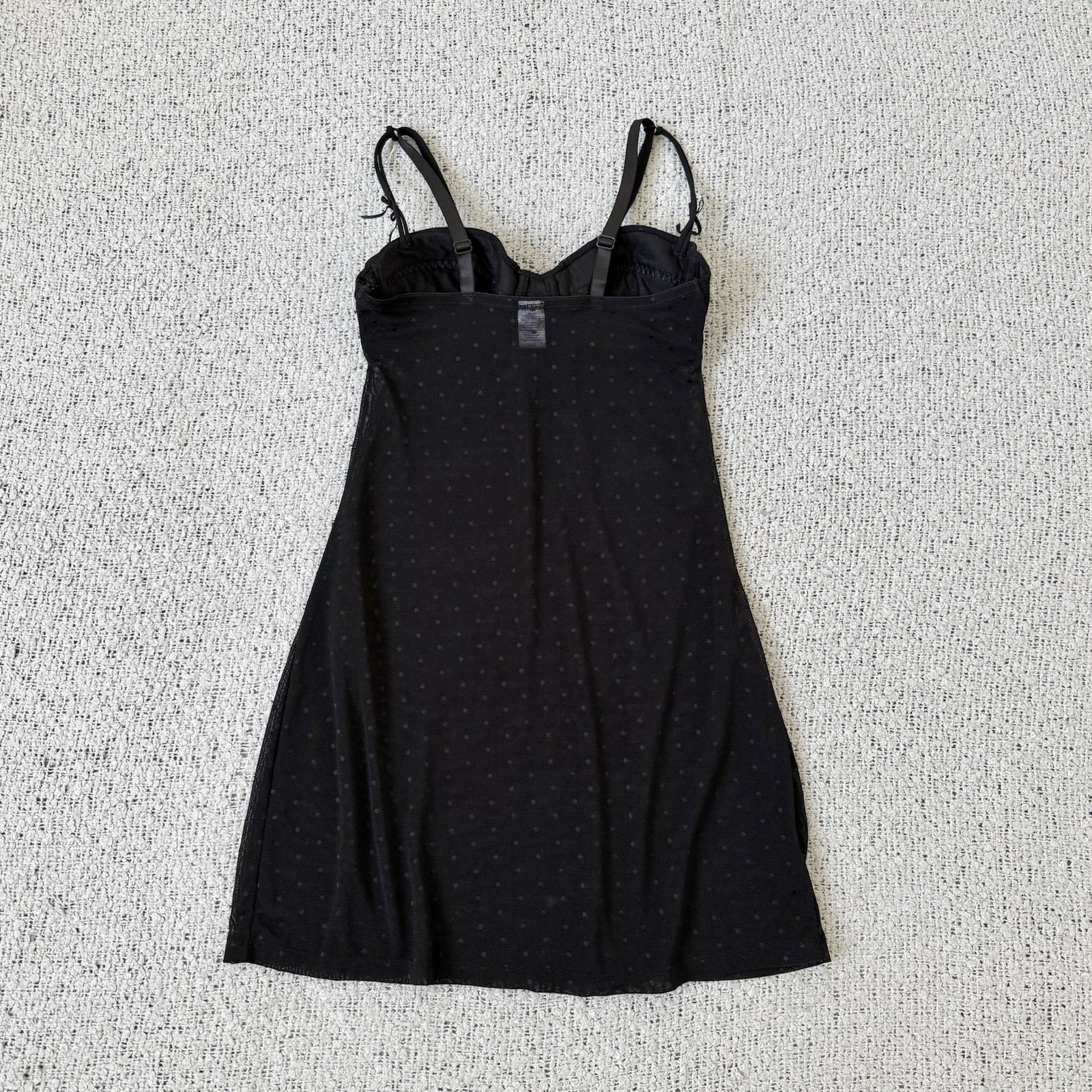 как выглядит Rampage Babydoll Dress Womens S Black Mesh Polka Dot Slip Y2K Lingerie Style фото