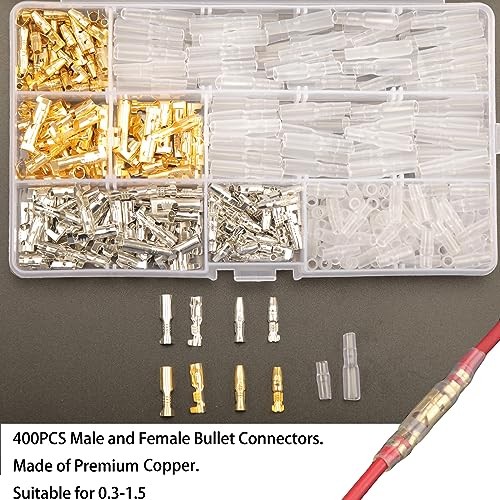 400PCS 3.9mm Bullet Connectors Male and Female, Brass Bullet Terminal 400pcs