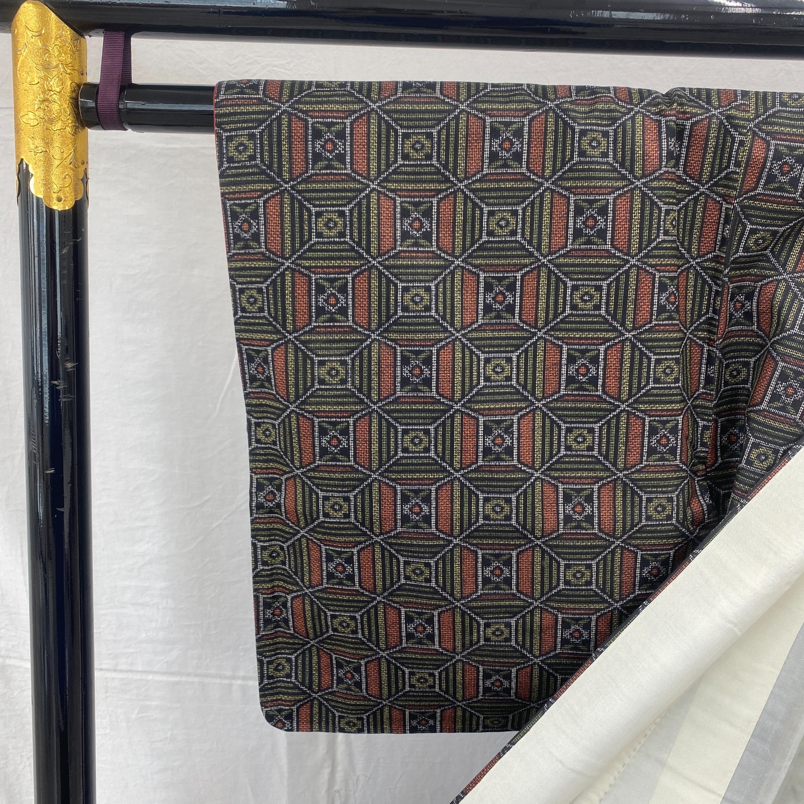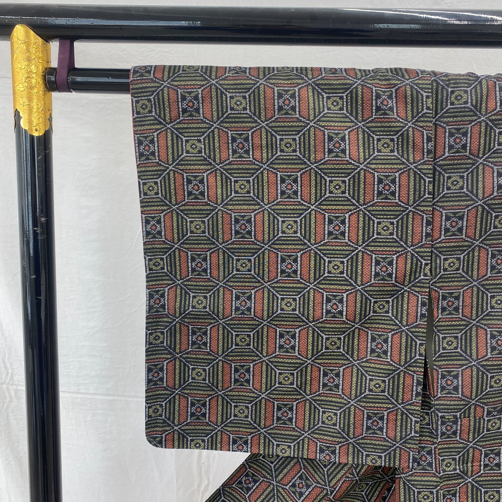 как выглядит Japanese Vintage Kimono Silk Green Oshima Tumug Traditional Authentic Length62in фото