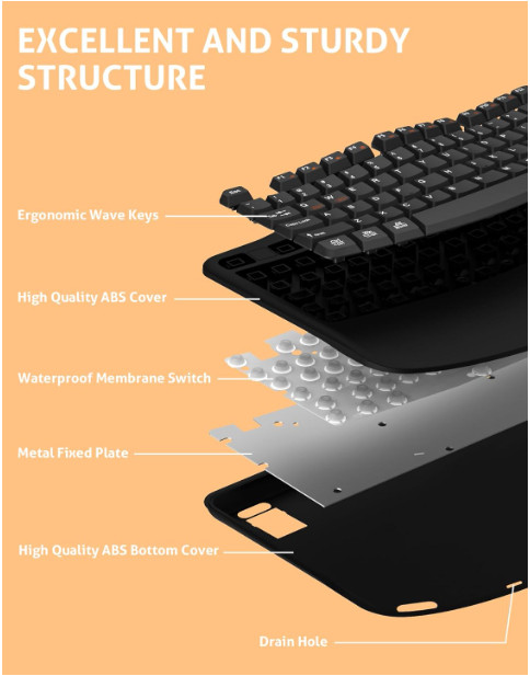 Ergonomic Wireless Keyboard with Wrist Rest, Wave Keys for Comfortable Natural T