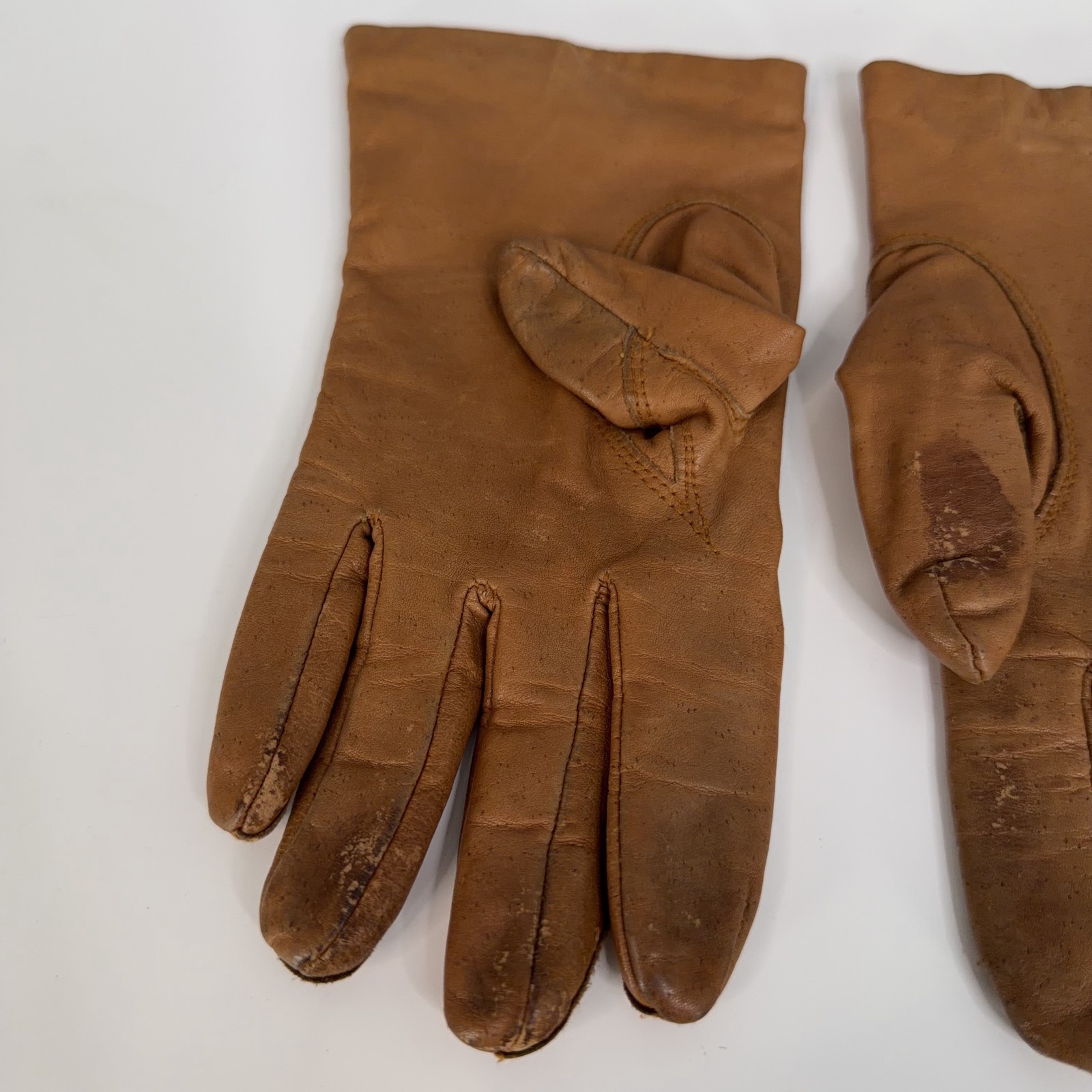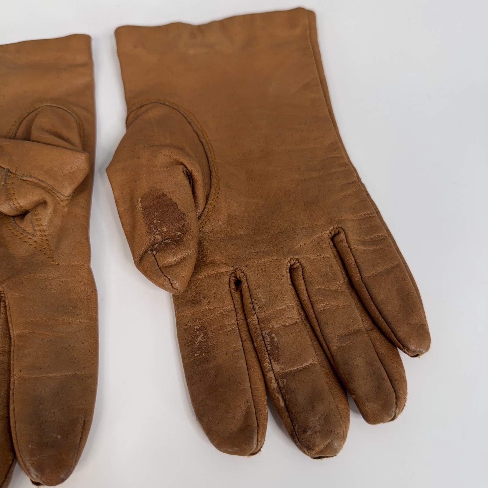 Vintage Van Raalte Gloves Womens Medium Brown Leather Driving Winter Warm Dress