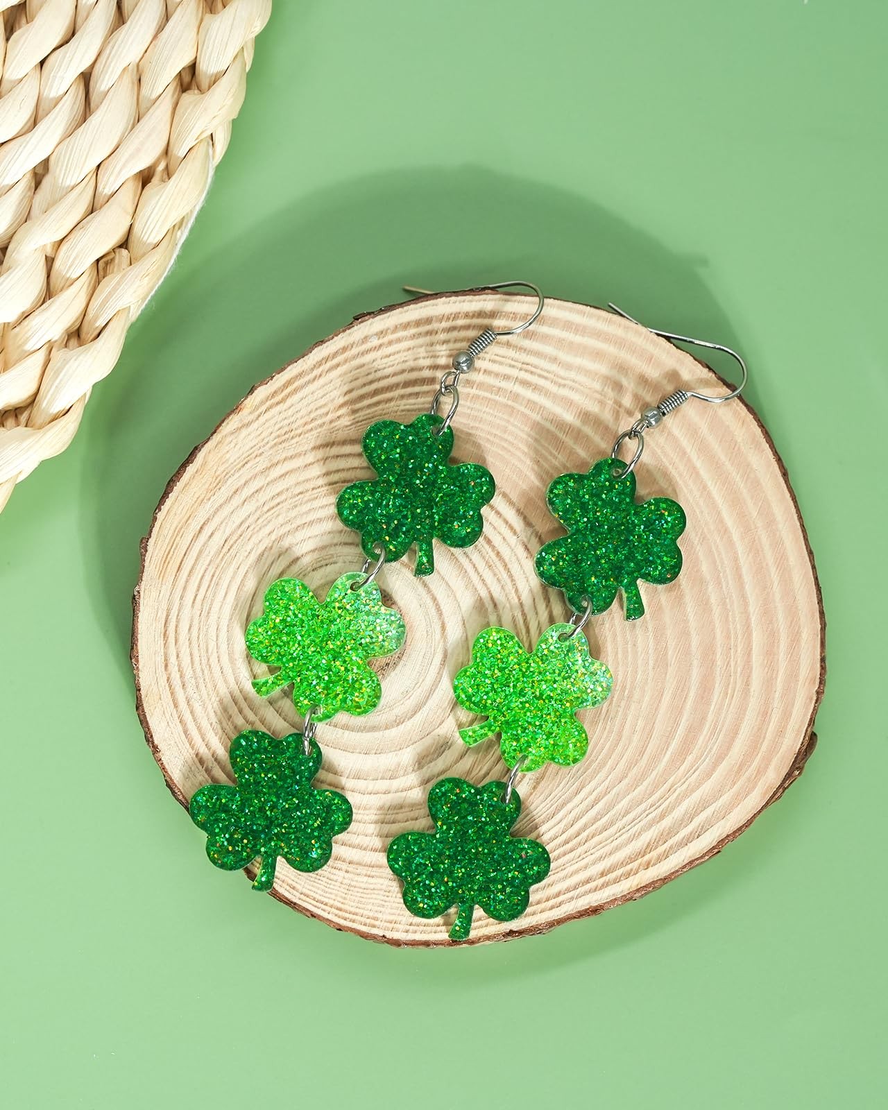 как выглядит St Patricks Day Earrings for Women Irish Green Shamrock Dangle Earrings for W... фото