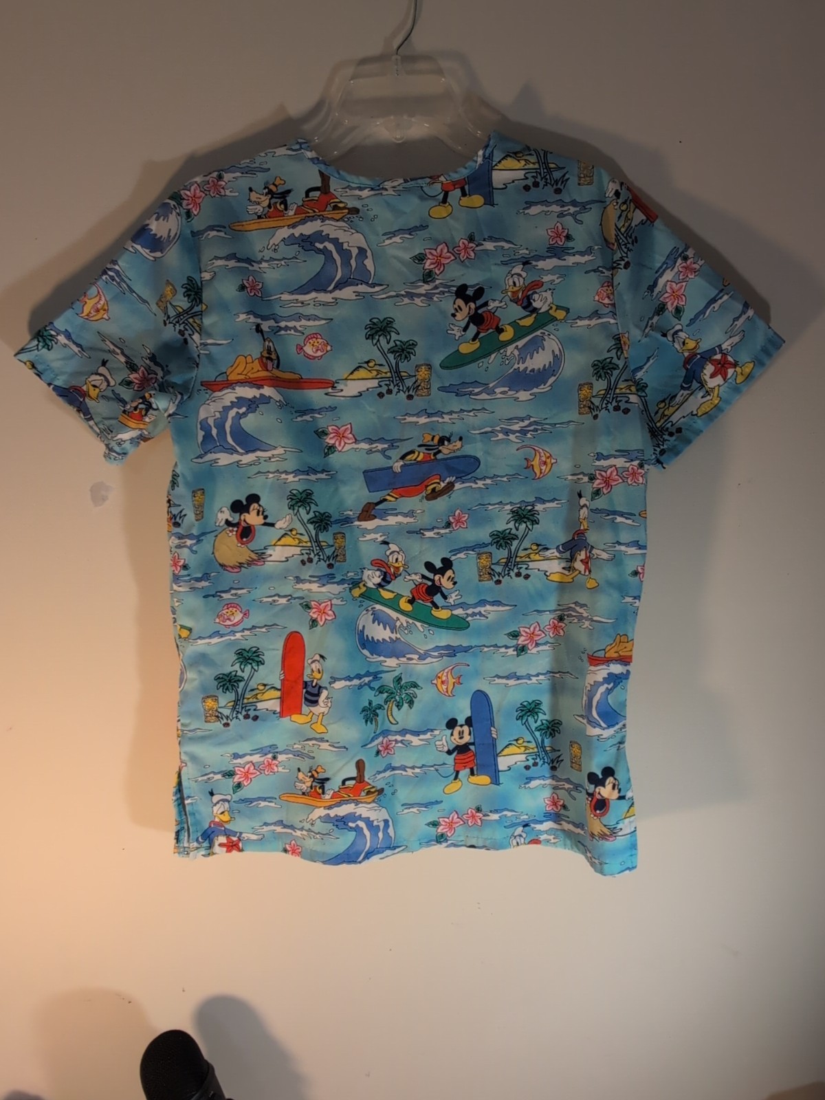 Wonderful World Of Disney Scrub Top Mickey Minnie Goofy Daffy Size S Womens