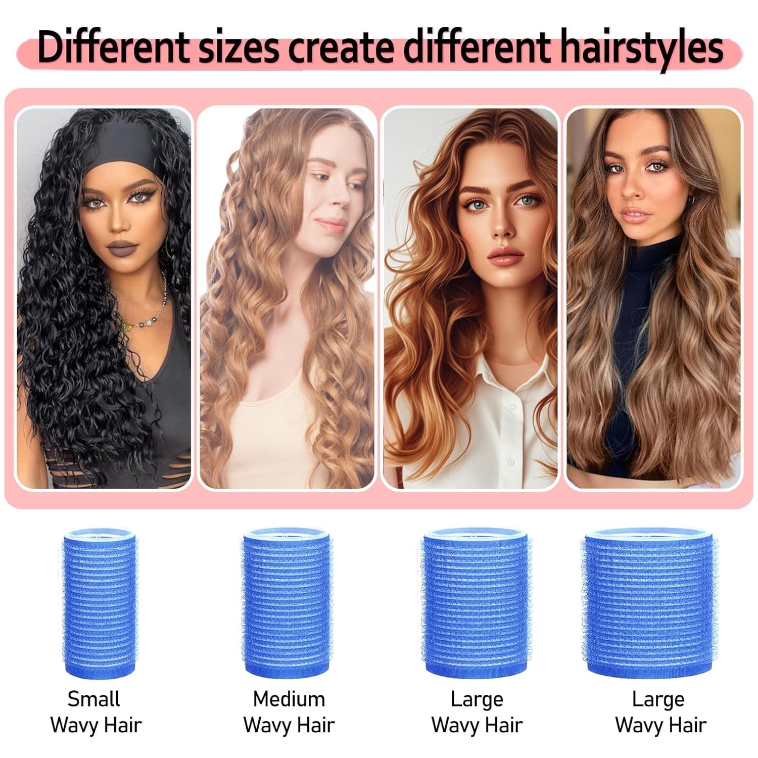 Self-Grip Hair Rollers Set with Clips - 4 Sizes for All Hair Types