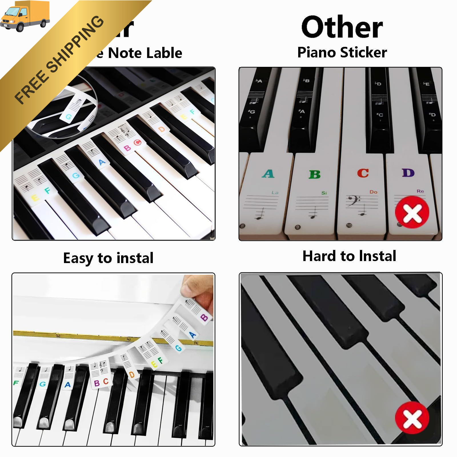 Colorful Removable Piano Keyboard Note Labels, 61Key-Colorful, 61key-colorful