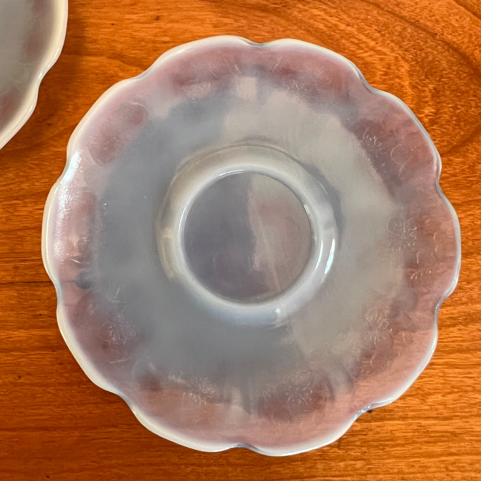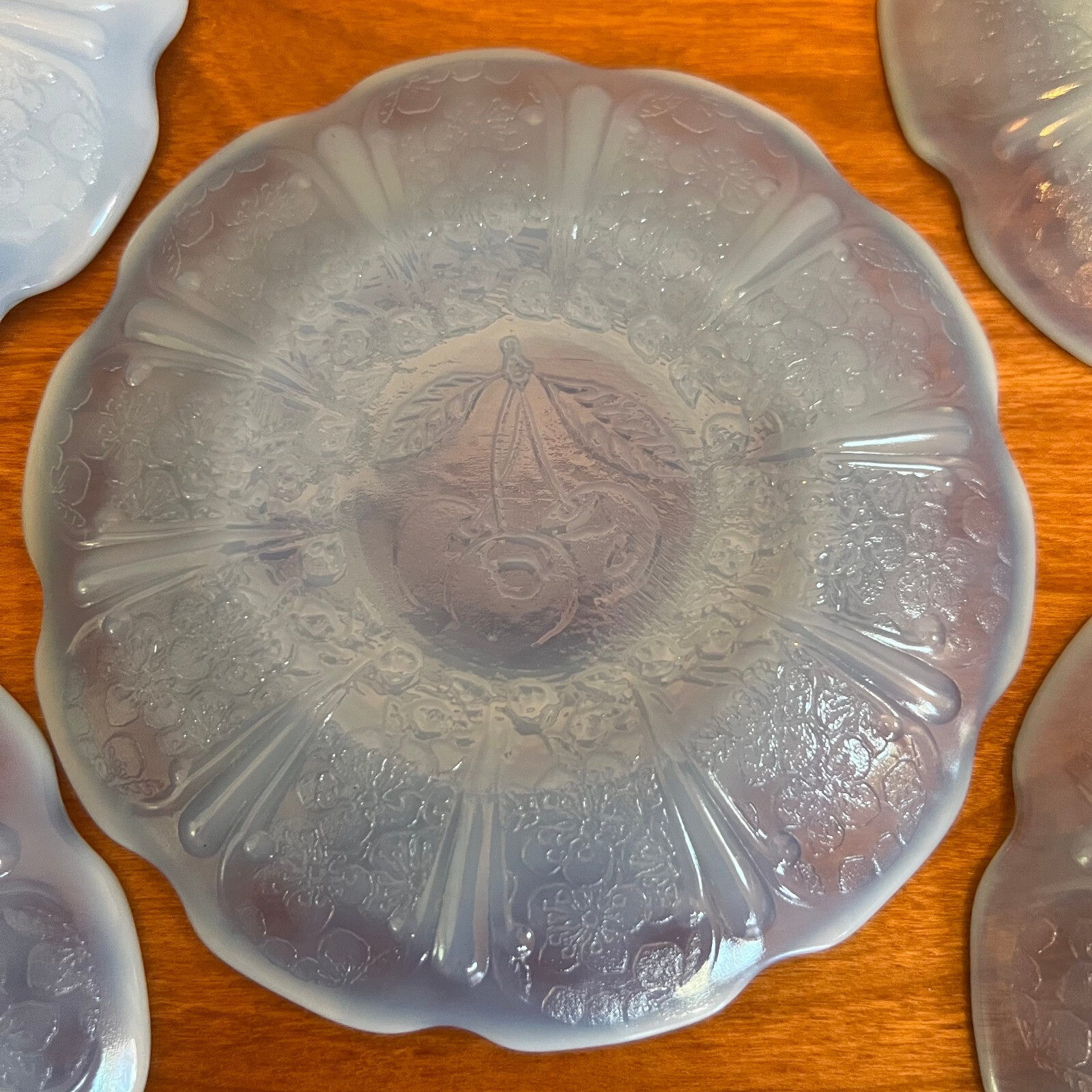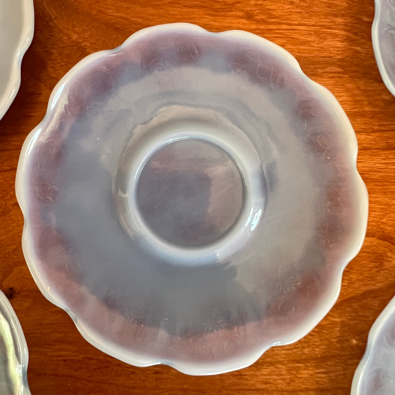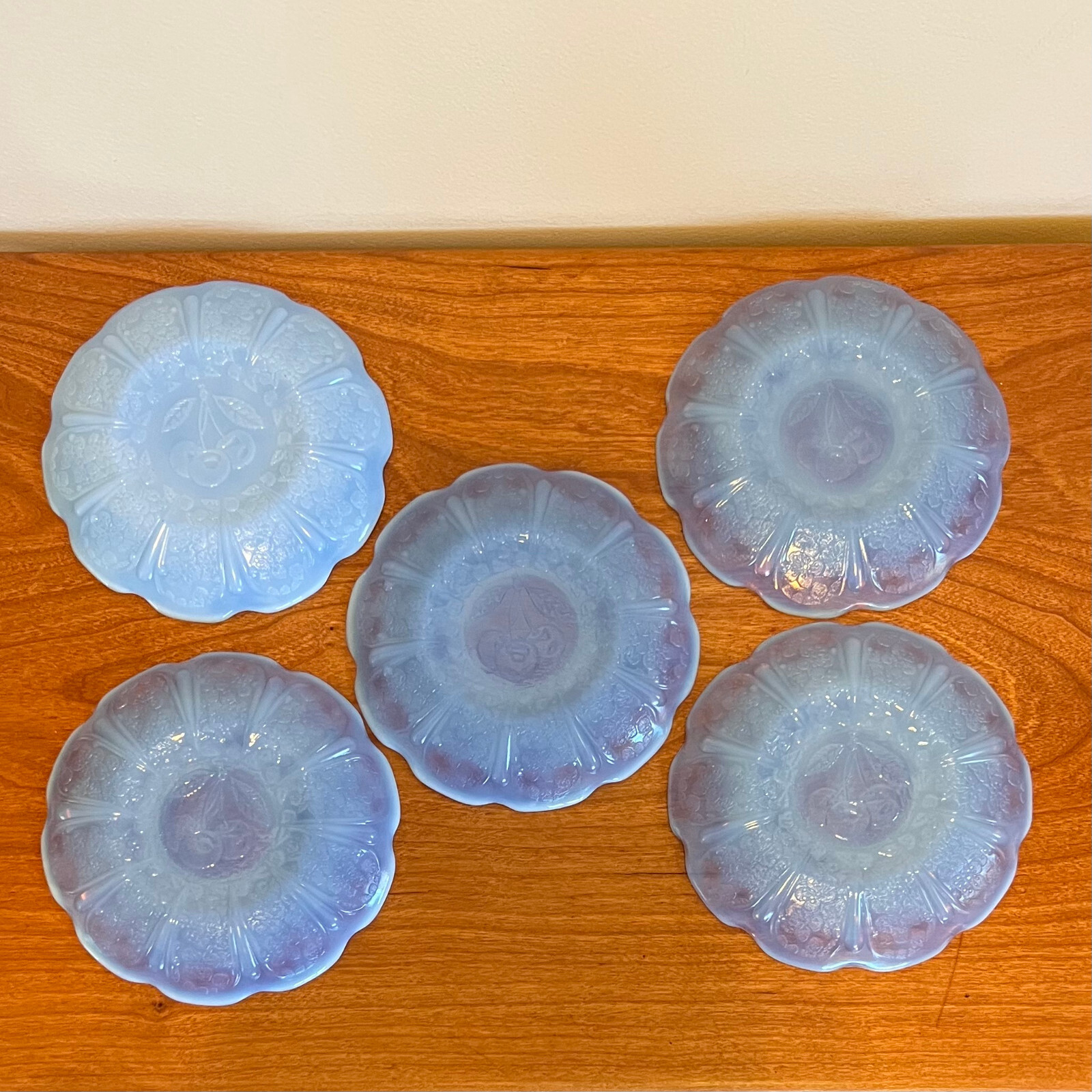 Jeannette Cherry Blossom Delphite Blue Child's Tea Set Saucers 1930s 5 Pieces