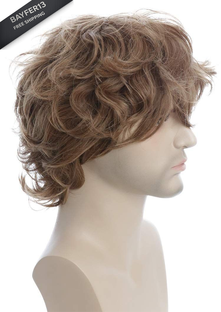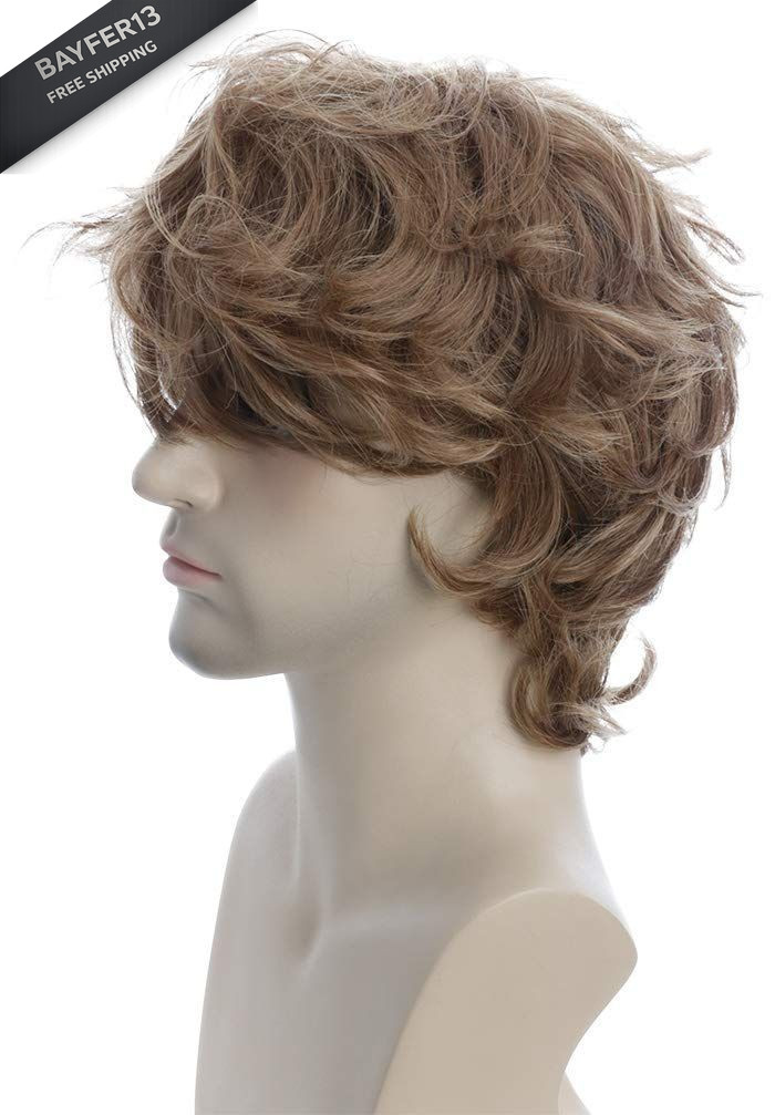 karlery Male Mens Short Curly Fluffy Brown Wig 1 Count Pack of 1 ,