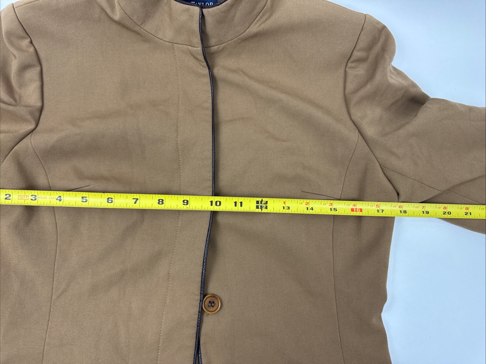 как выглядит Ann Taylor Brown Blazer Hidden Buttons Size 2P Leather Piping фото