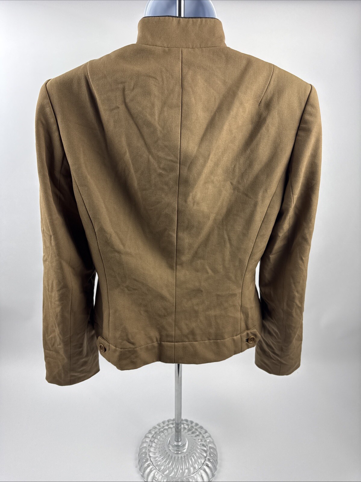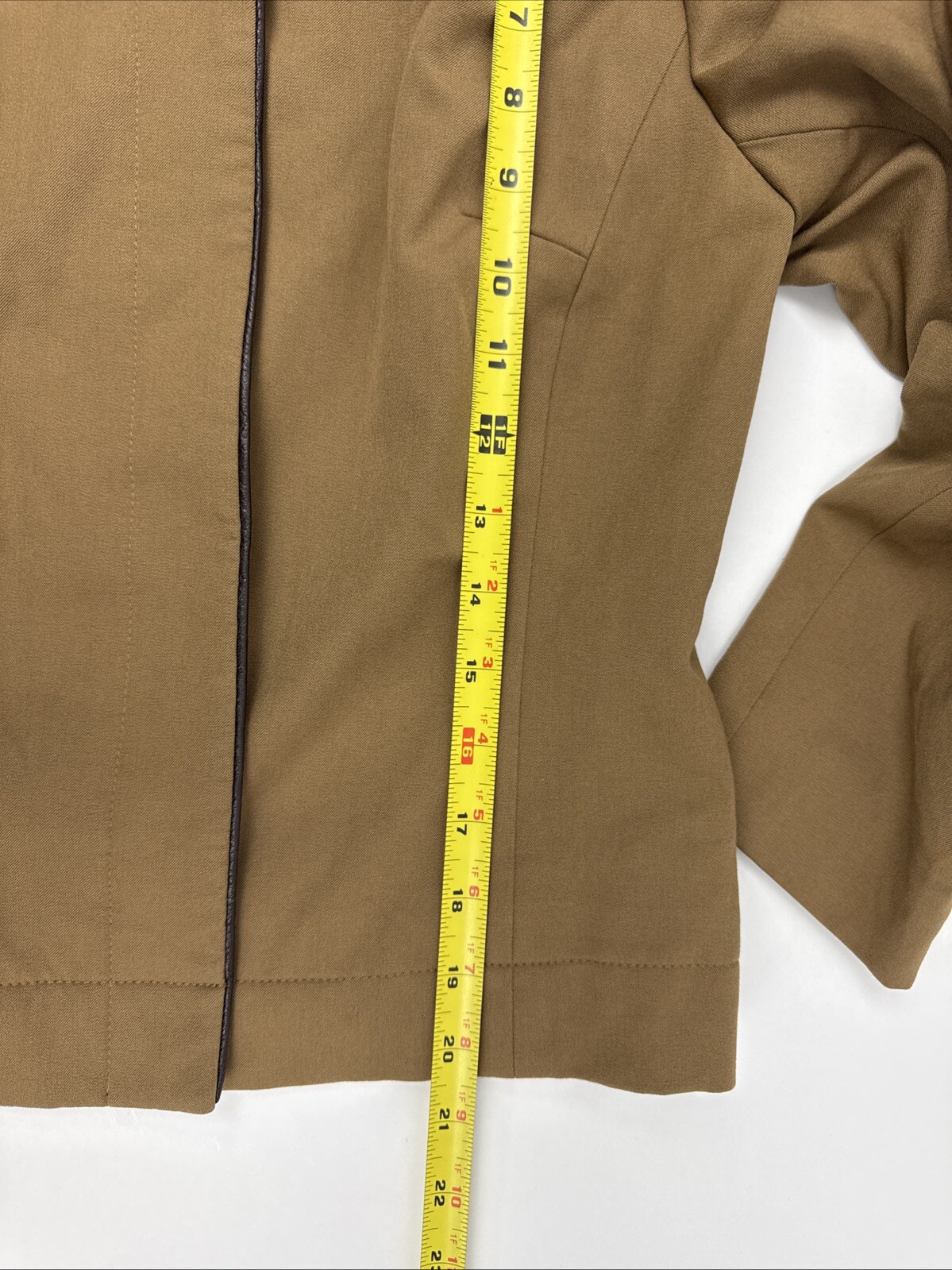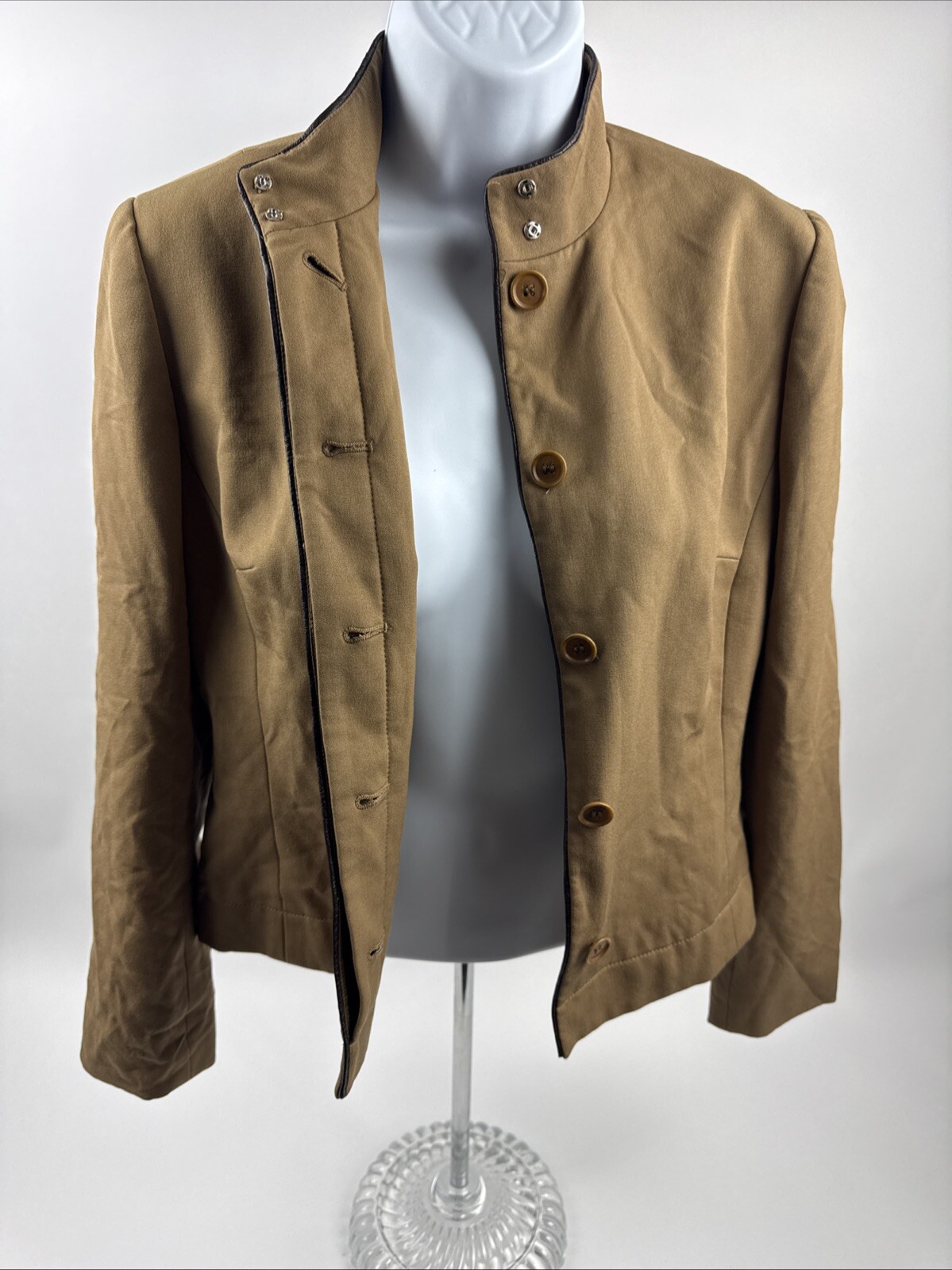 Ann Taylor Brown Blazer Hidden Buttons Size 2P Leather Piping