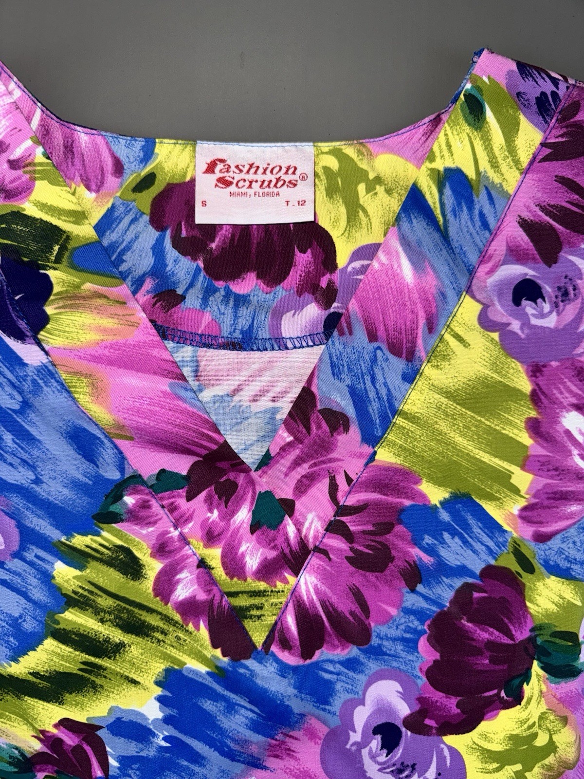 как выглядит Fashion Scrubs Women s V Neck Scrub Top Small Floral Brushstroke Design Vibrant фото
