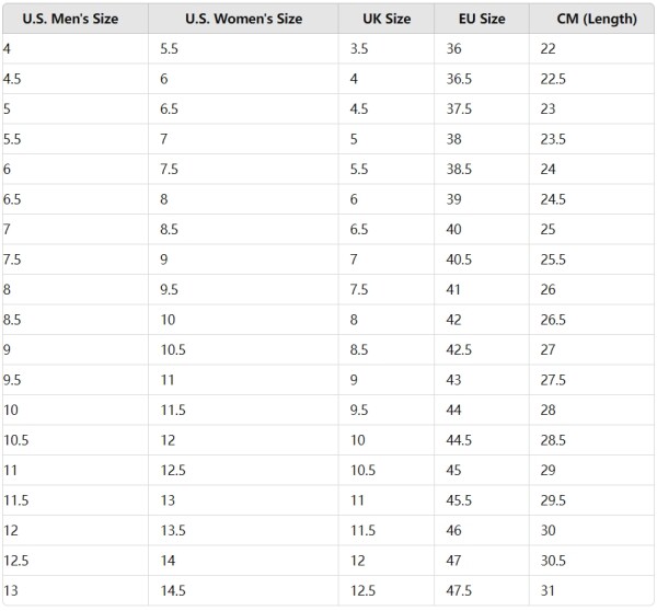 US Shoe Size: 4-13