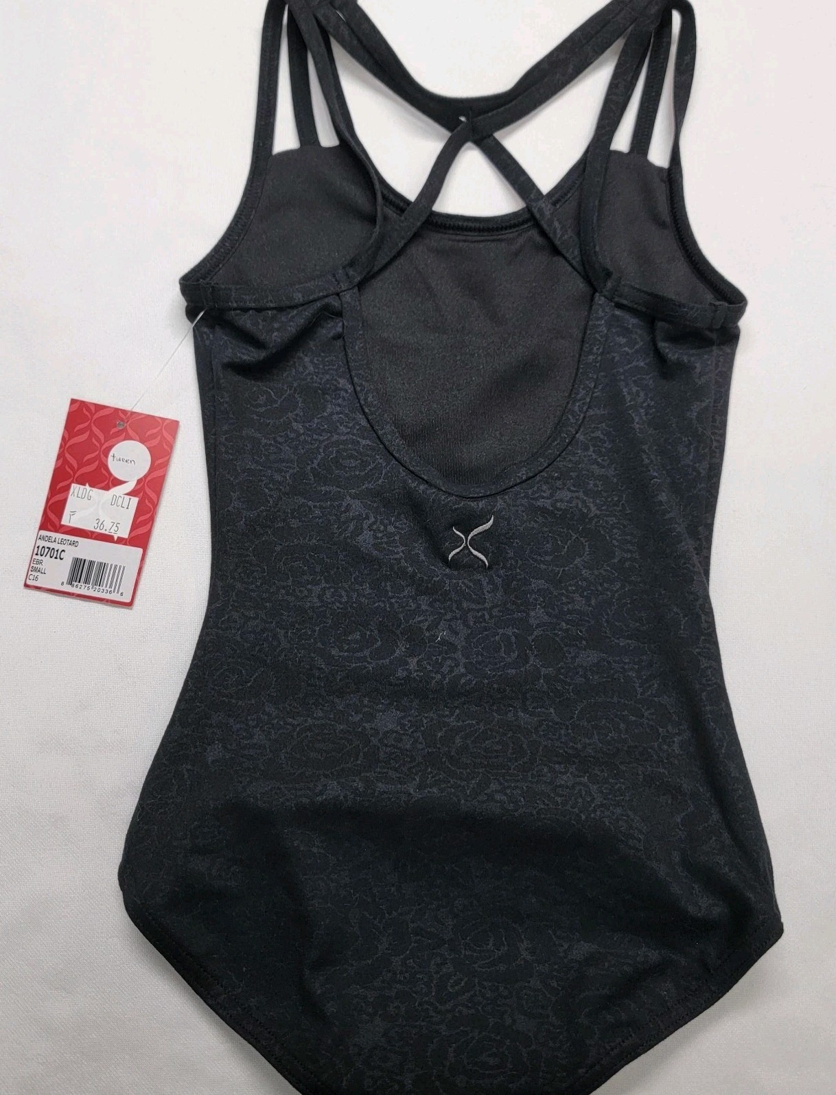 как выглядит Capezio Andela Leotard Black Floral Print Open Back Criss-cross Straps SZ SC фото
