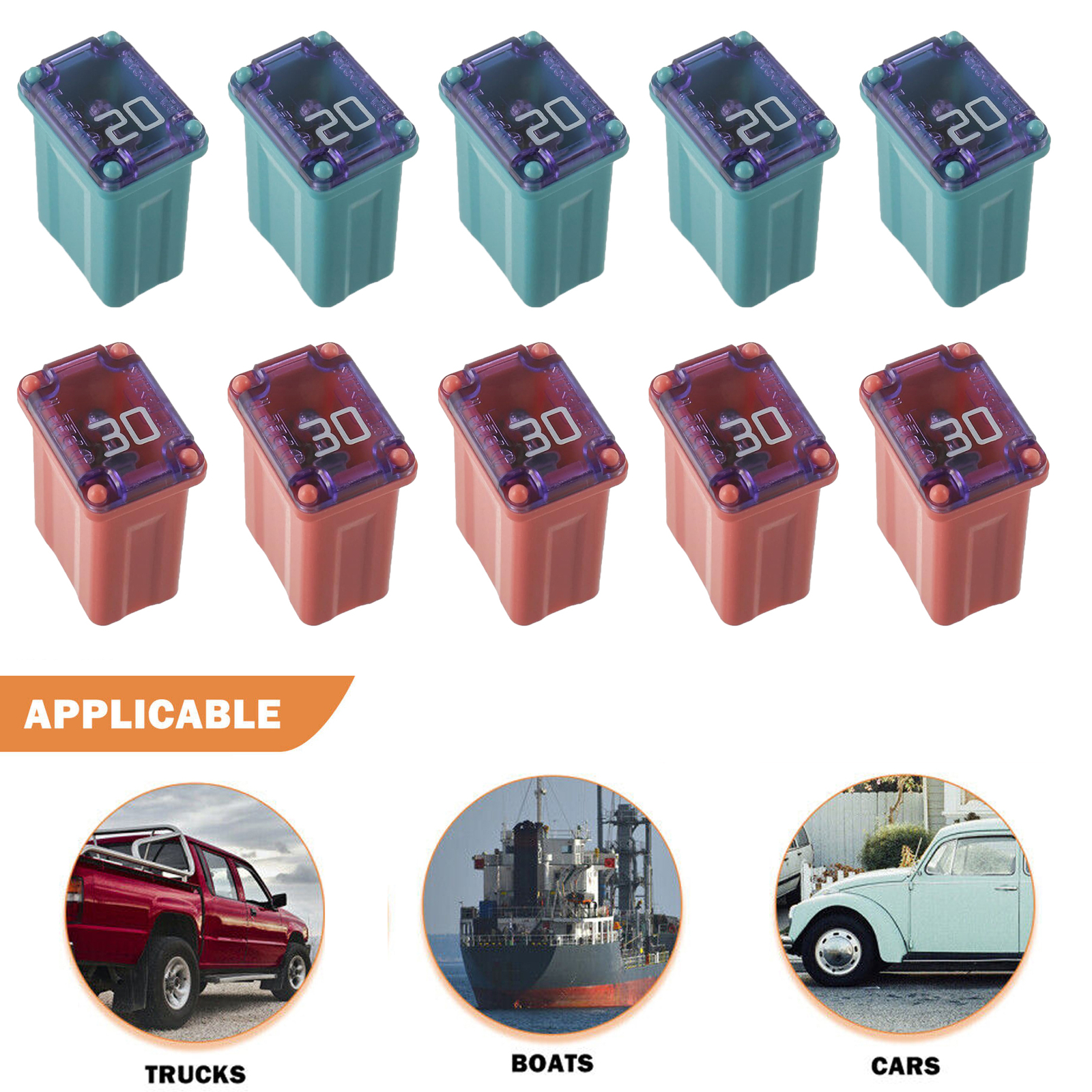 10PCS Micro Cartridge Slow Blow Fuses Mcase Type Fuse for Car Truck SUV 20A 30A