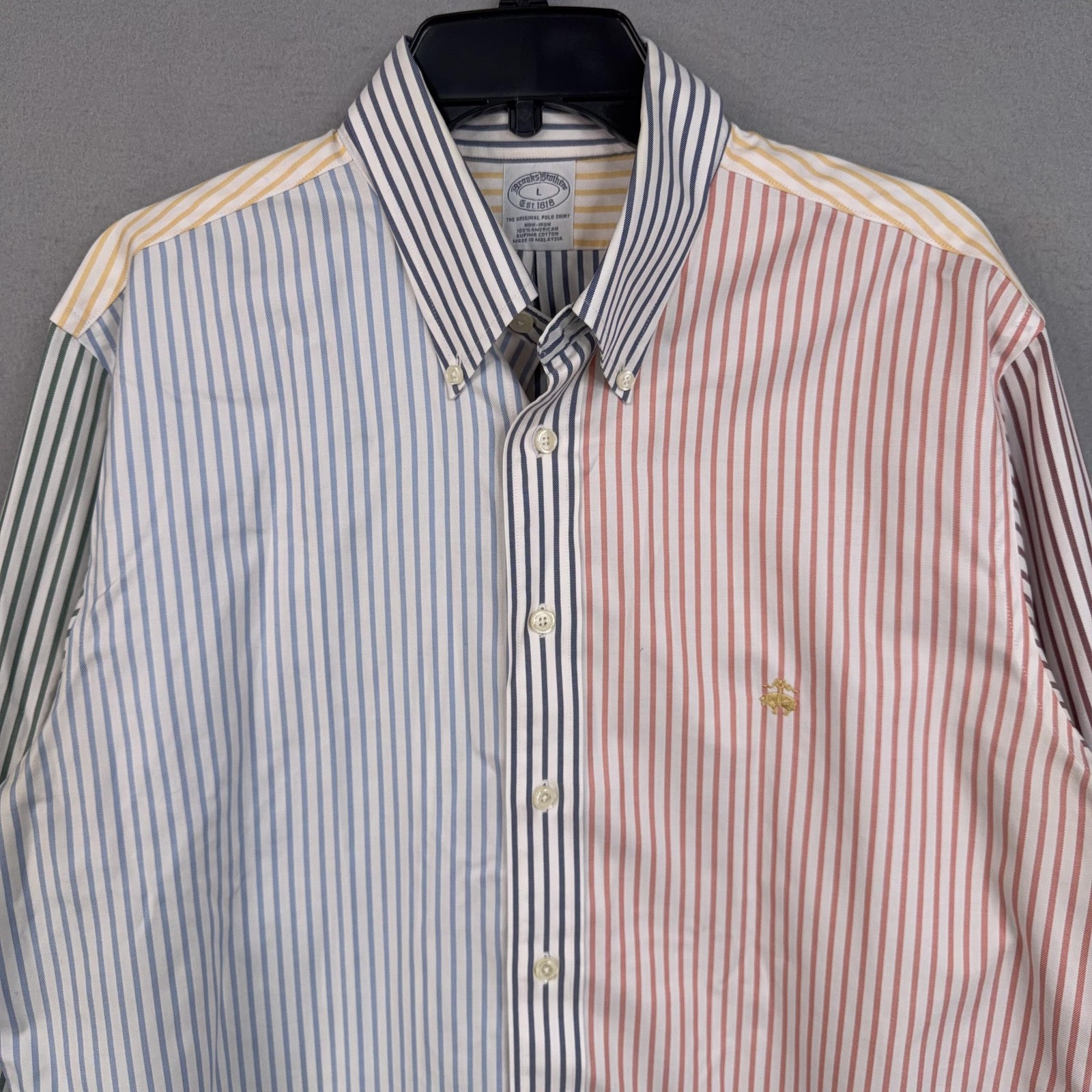 Brooks Brothers Shirt Mens Large Colorblock Stripe Button Down Non Iron Supima