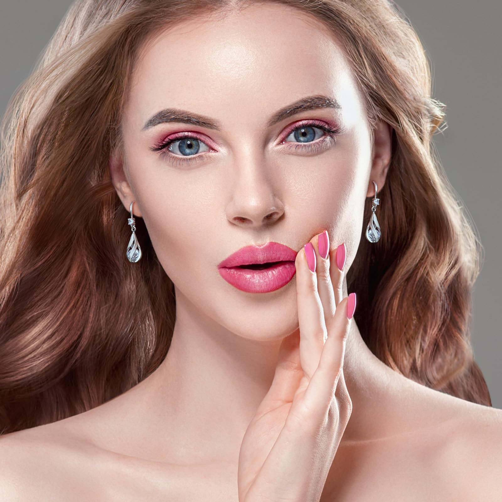 как выглядит Silver White Cubic Zirconia Earrings Dangling for Women 1.5 inches, white фото