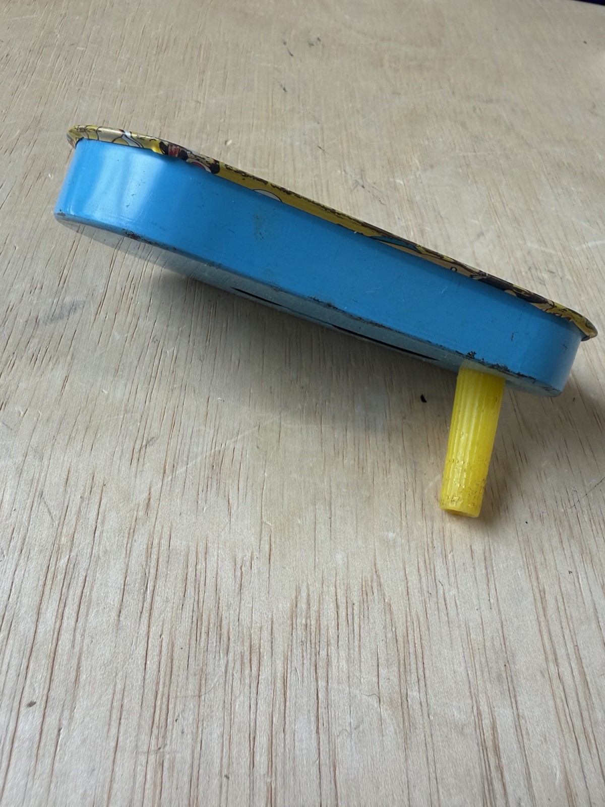 Vintage Tin Noisemaker Litho Krystal Restaurants Toy Decorated Ratchet Spinner