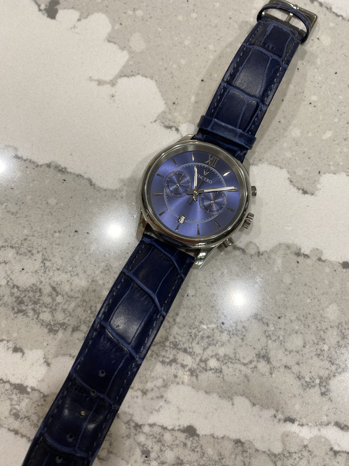 Mens Vincero Wristwatch Bellwether Blue Leather Crocodile Band Chronograph