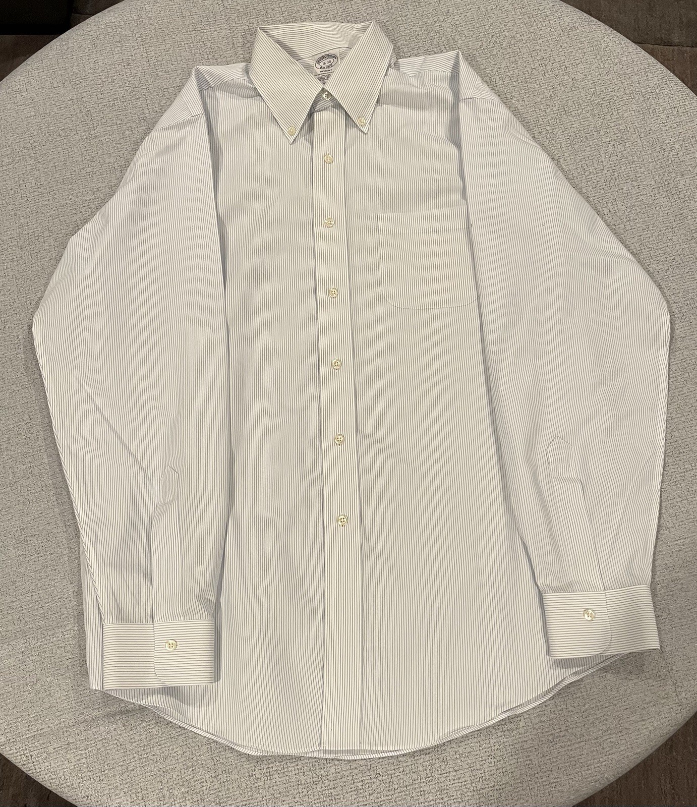 как выглядит Brooks Brothers Long Sleeve Dress Shirt White W/ Blue Stripes 16-34 Button Down фото
