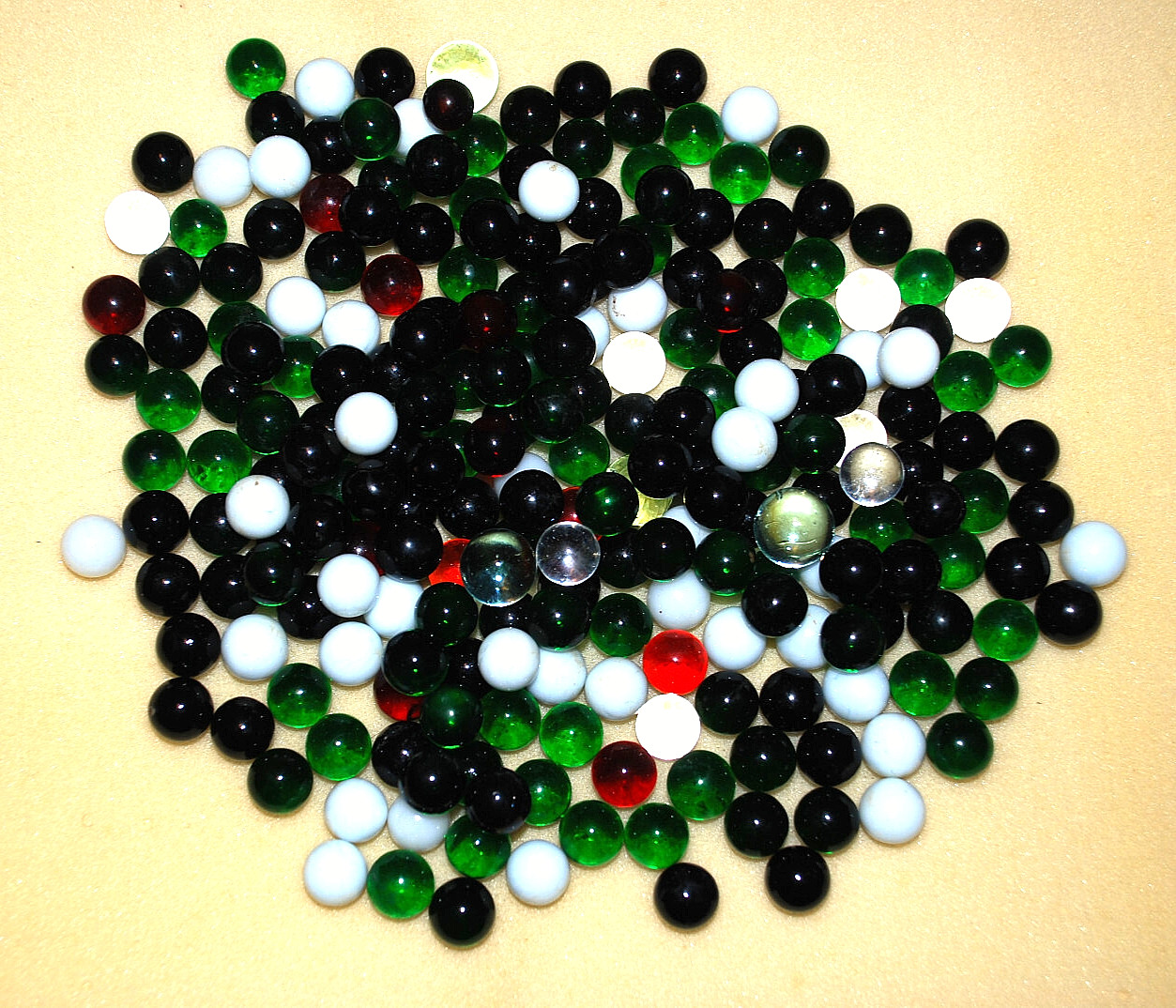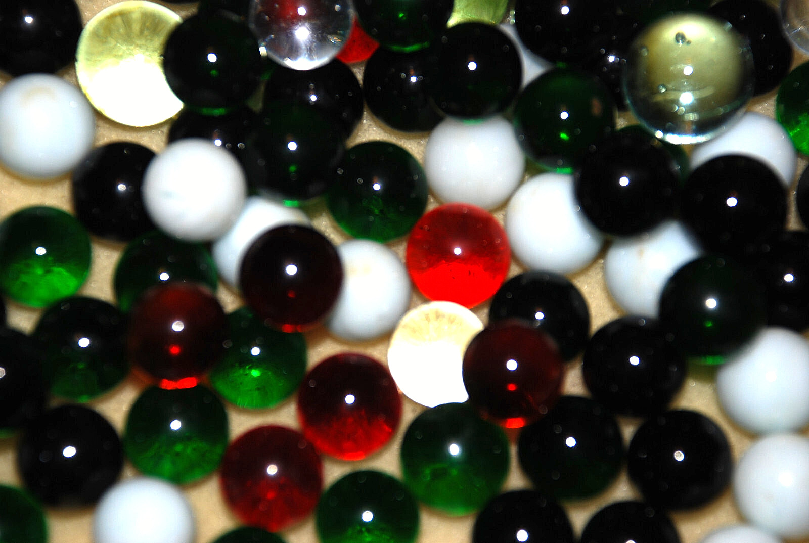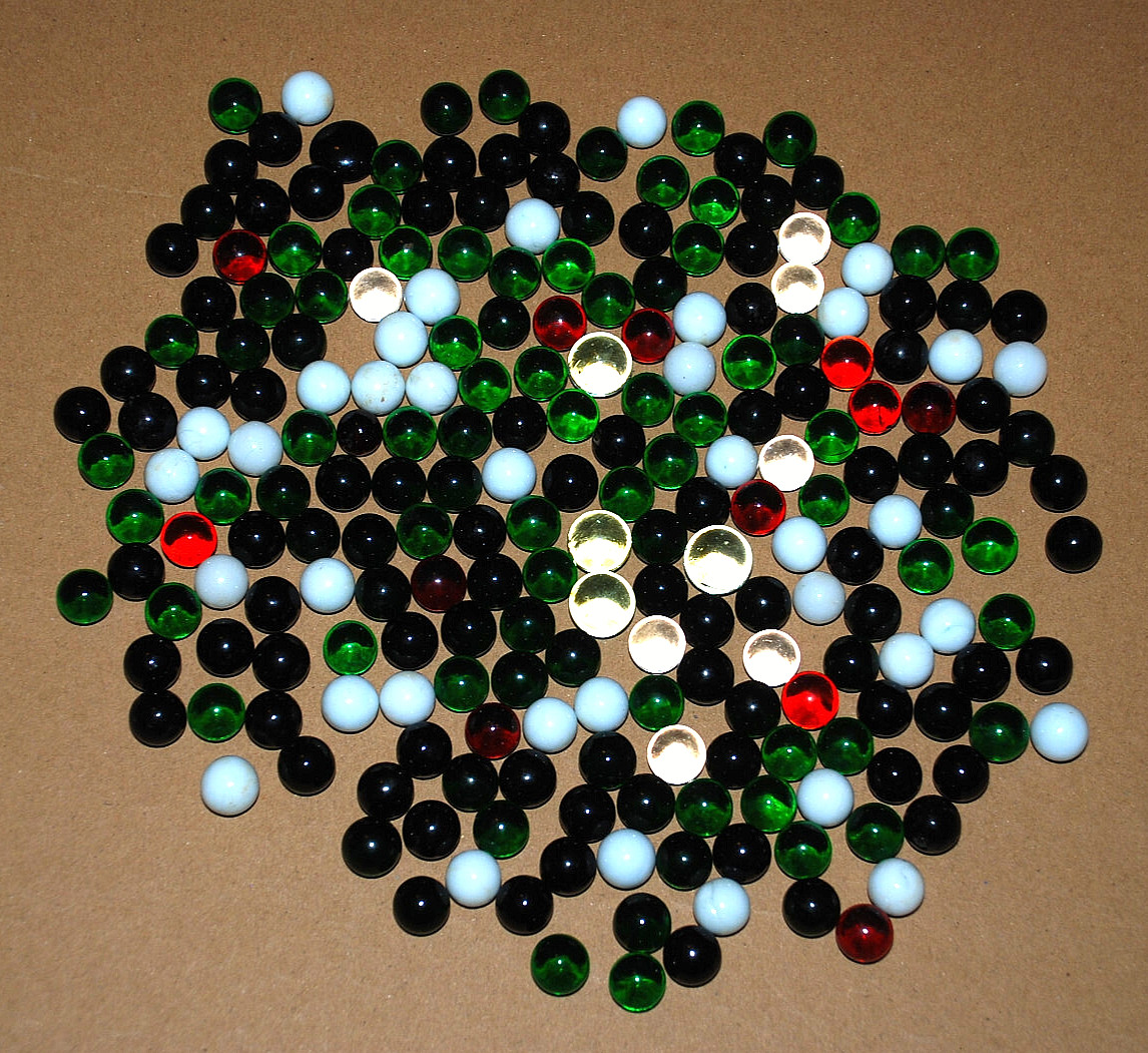 Тип: Vintage black, green, opaque, red marbles