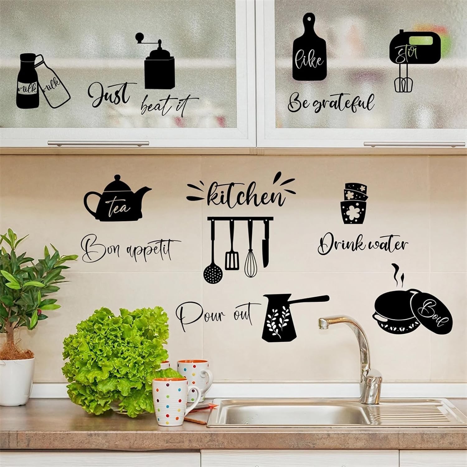 Black Bowl Kitchenware Utensil Kitchen Wall Stickers DIY Kitchen Quotes Wall