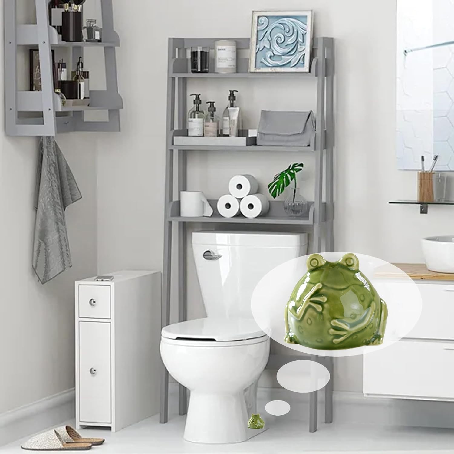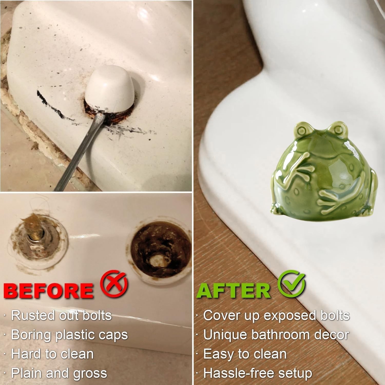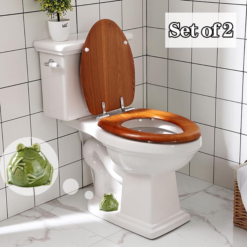 Ceramic Frog Toilet Bolt Covers Decorative, Set of 2 Tall Toilet Bolt Green