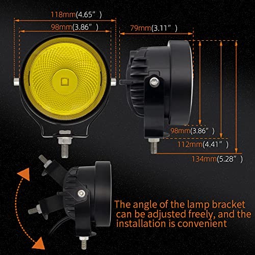 LED Round Yellow OffRoad Driving Fog Lights Flood Beam 2Pcs 4 Yellow Flood Beam