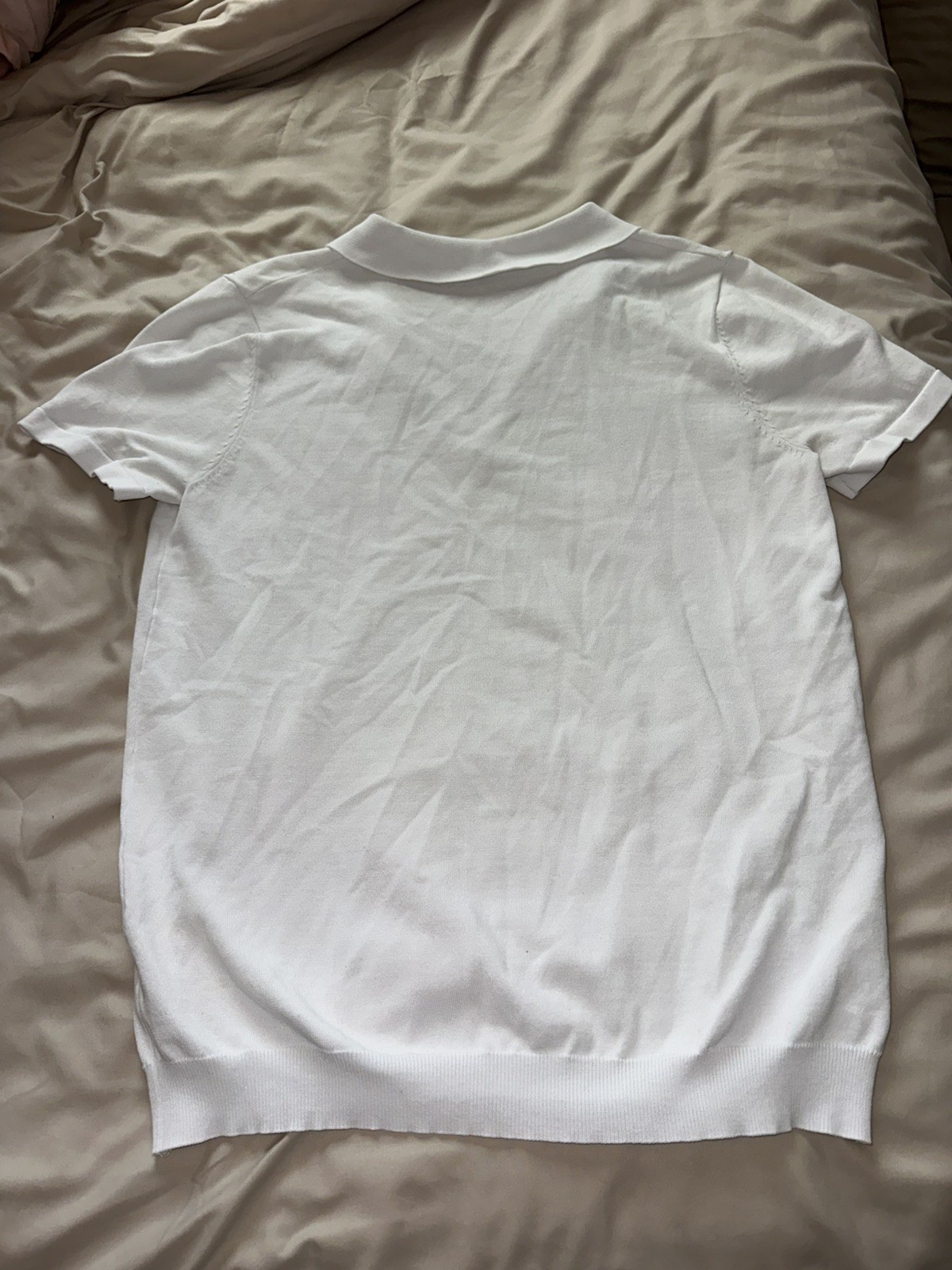 как выглядит Mens White Short Sleeve Zip Collared Polo Shirt Solid Pattern фото