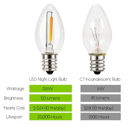 Night Light Bulbs, C7 Candelabra LED 4 Count Pack of 1 2700k Warm White
