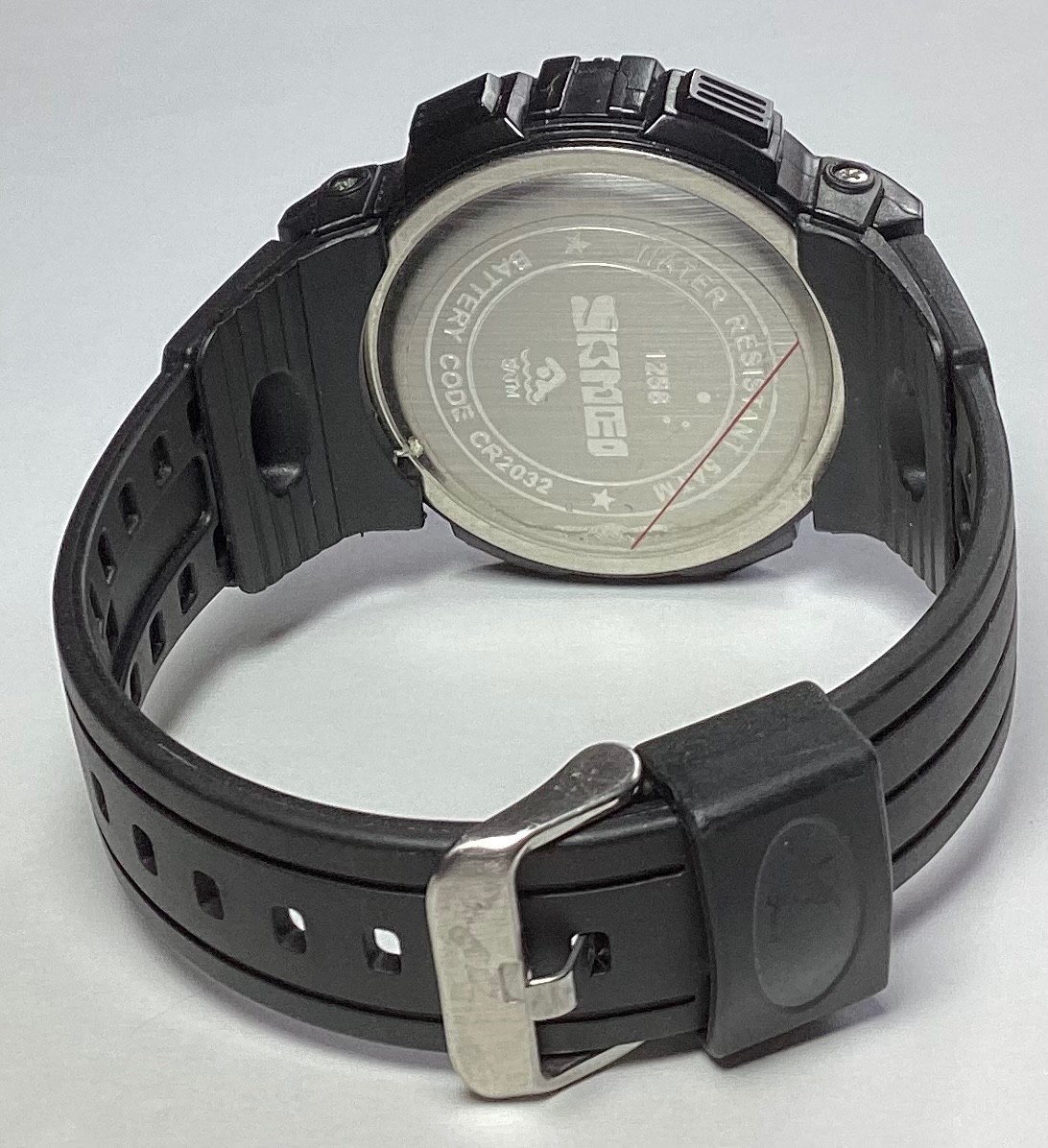 Skmei Sport Mens Watch Digital Alarm Chron WR 5ATM Black Rubber New Battery
