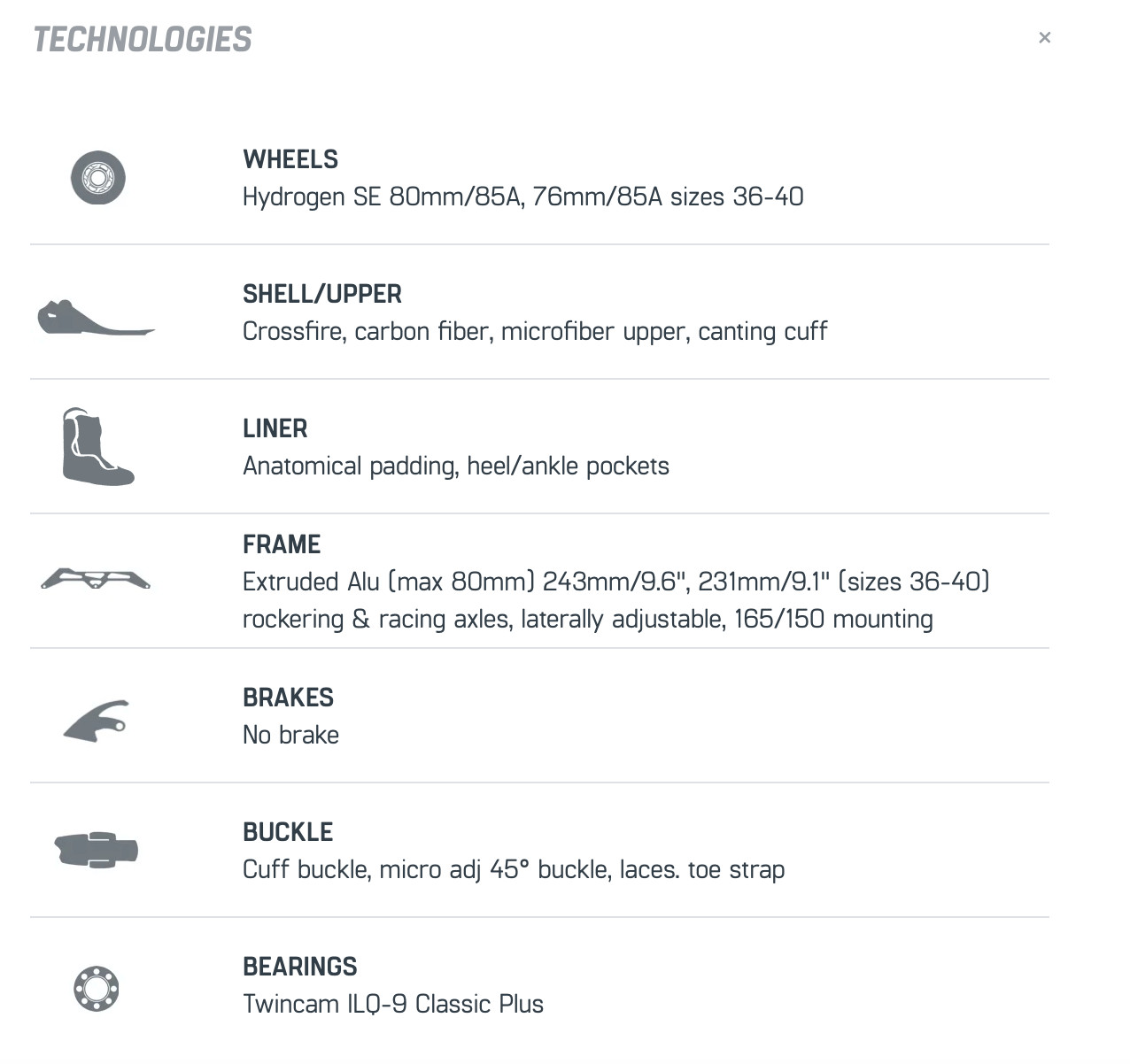 Rollerblade Crossfire - Slalom rockered or flat rocker. 80mm hydrogen wheels.