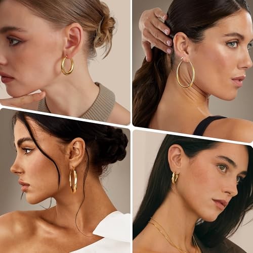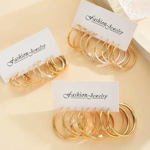 12 Pairs Gold Hoop Earrings Set for Women, Lightweight Big/Large Hoop gold