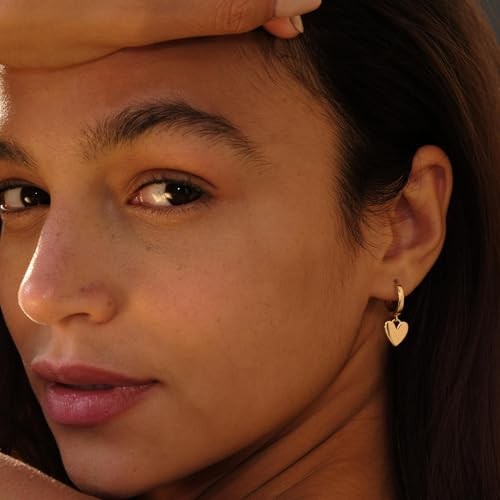 Gold Heart Hoop Earrings Huggie Earrings for Women 14k Gold Plated tiny heart