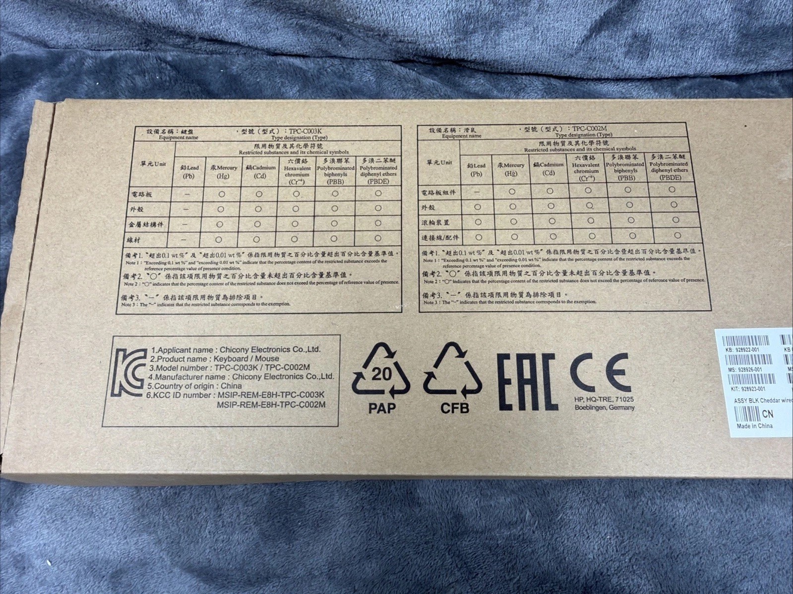 HP Black Keyboard And Mouse Kit USB Wired 928923-001 ASSY BLK Cheddar Wired USB