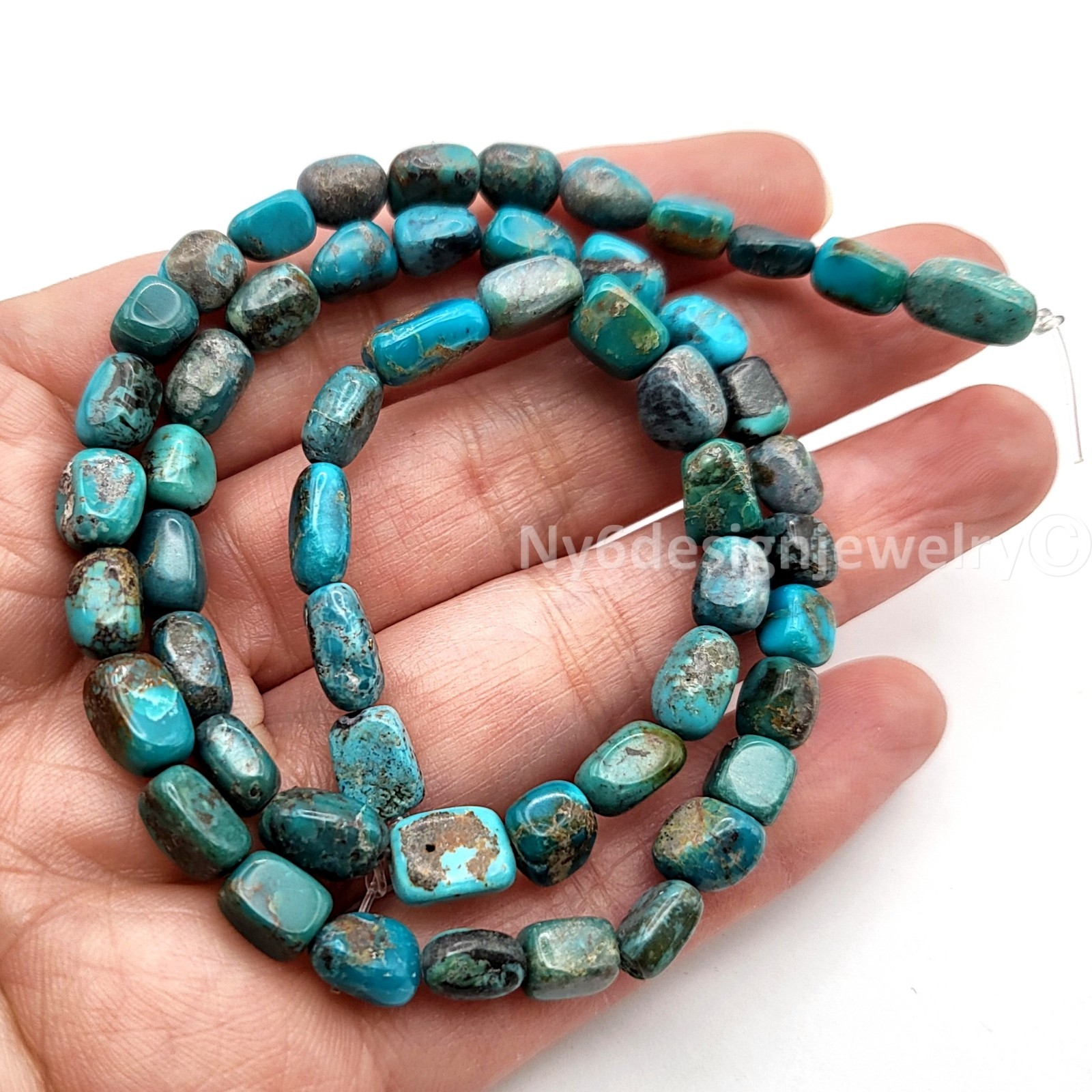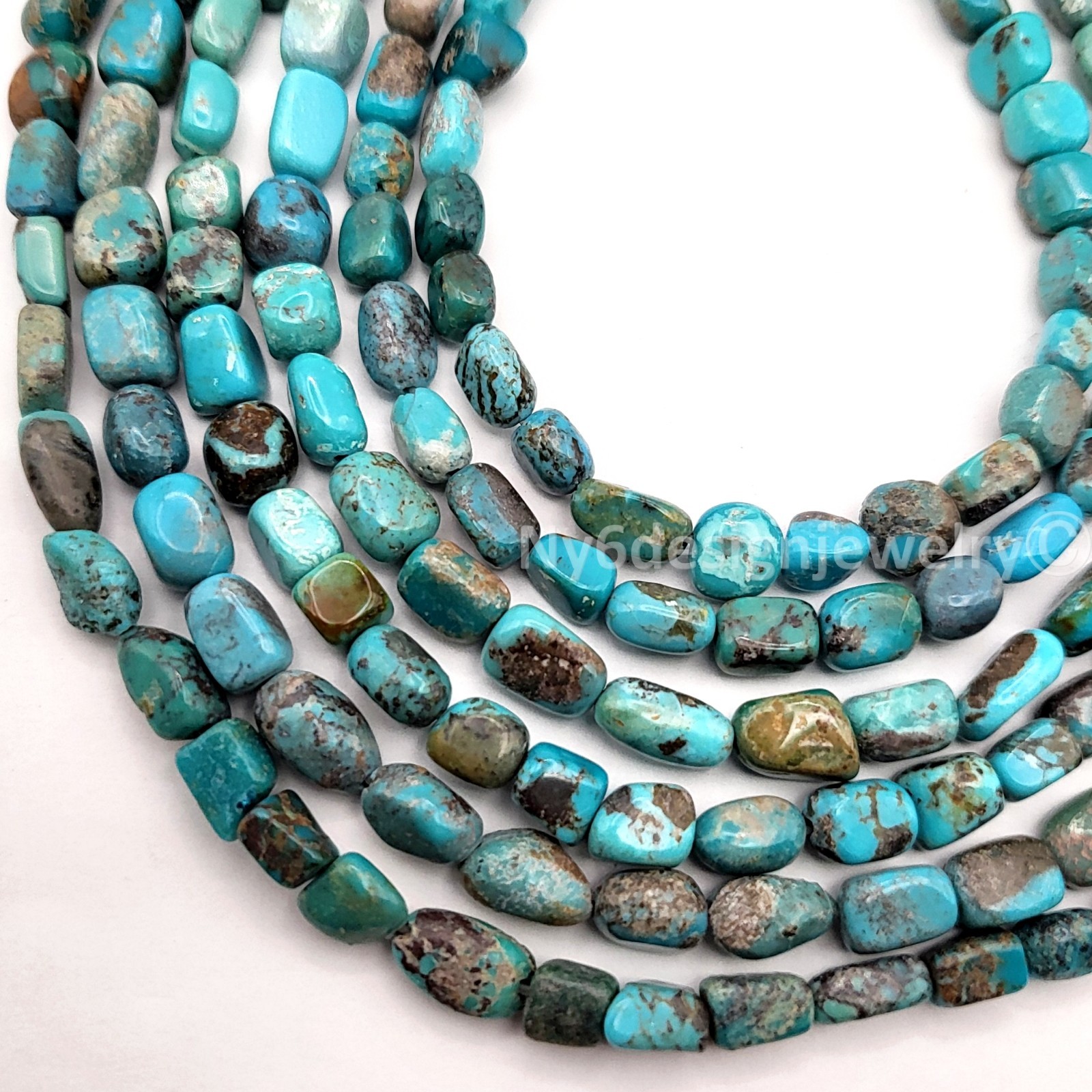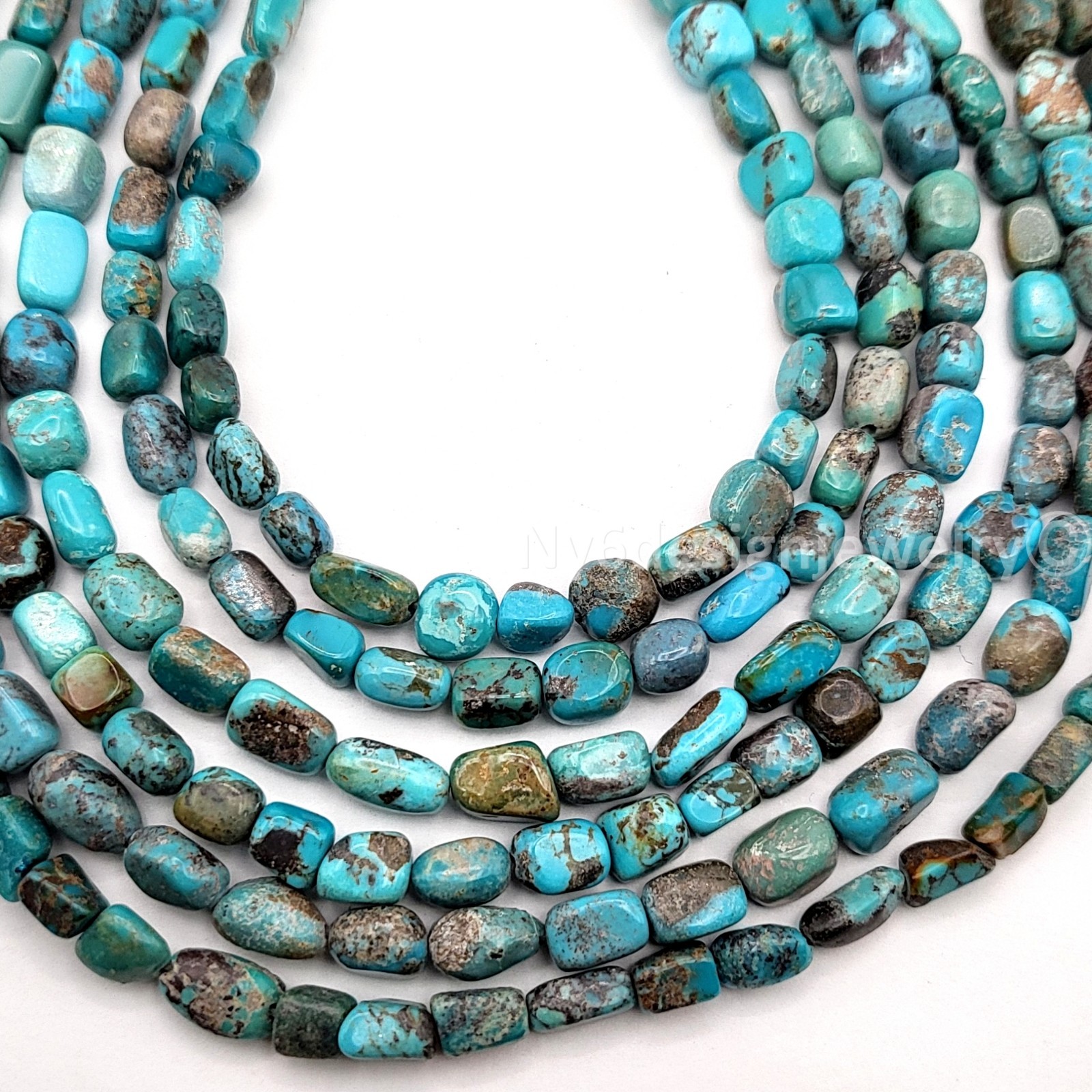 Natural Turquoise Nugget Beads 5x8mm, Smooth Blue Gemstone Strand for Jewelry Ma