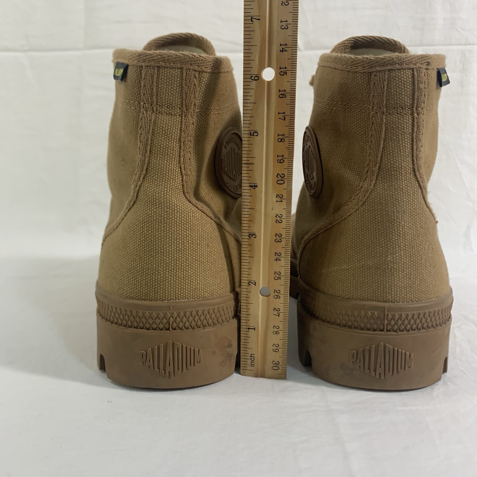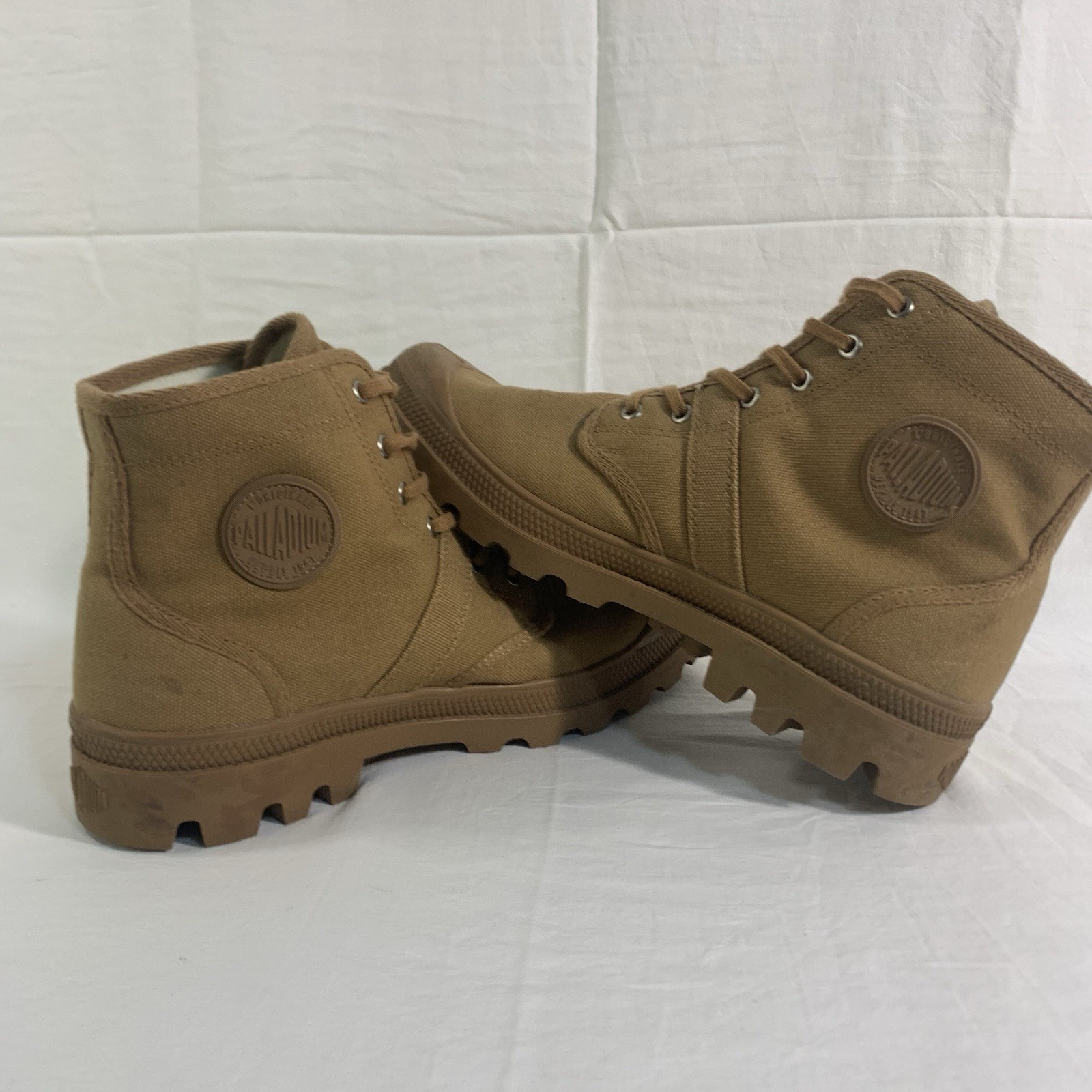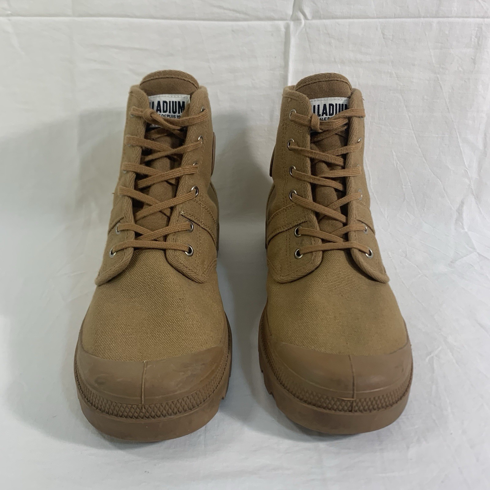 как выглядит Palladium Pallabrousse Canvas High-Top Boots Men s 11 Khaki Brown Lace Up EUC фото