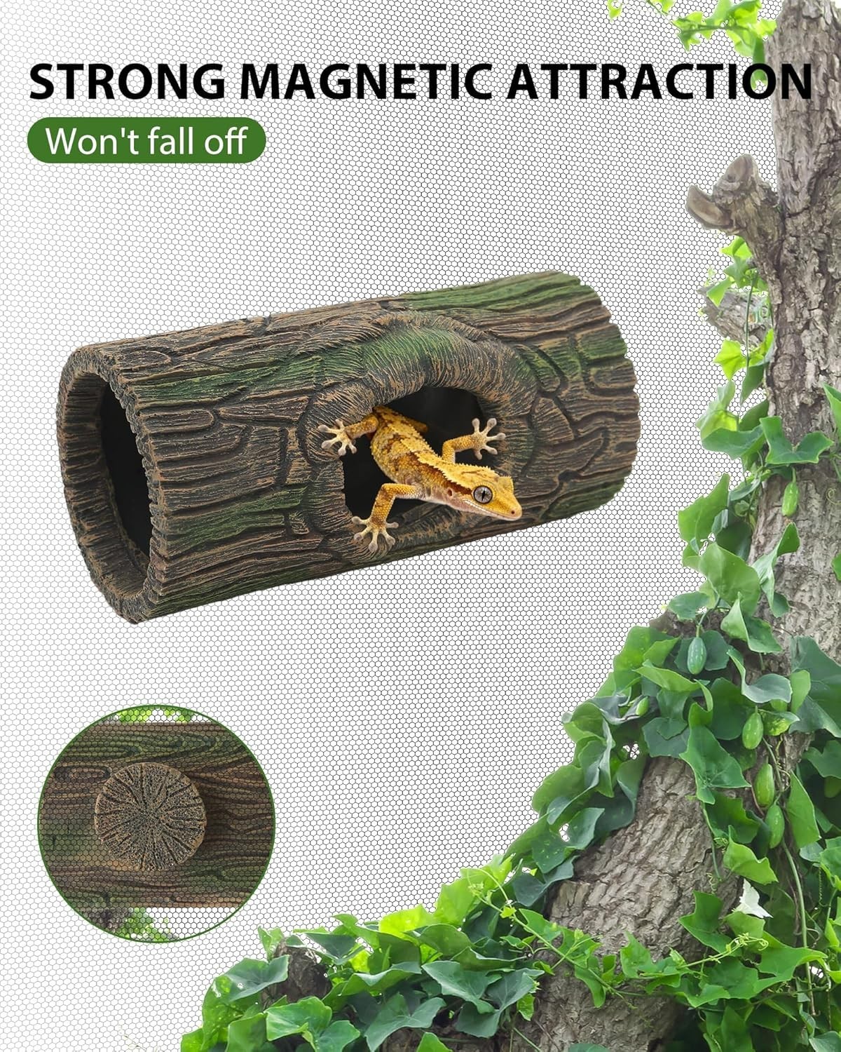 Magnetic Crested Gecko Hide Resin Hollow Log Cave Reptile Hide Cave