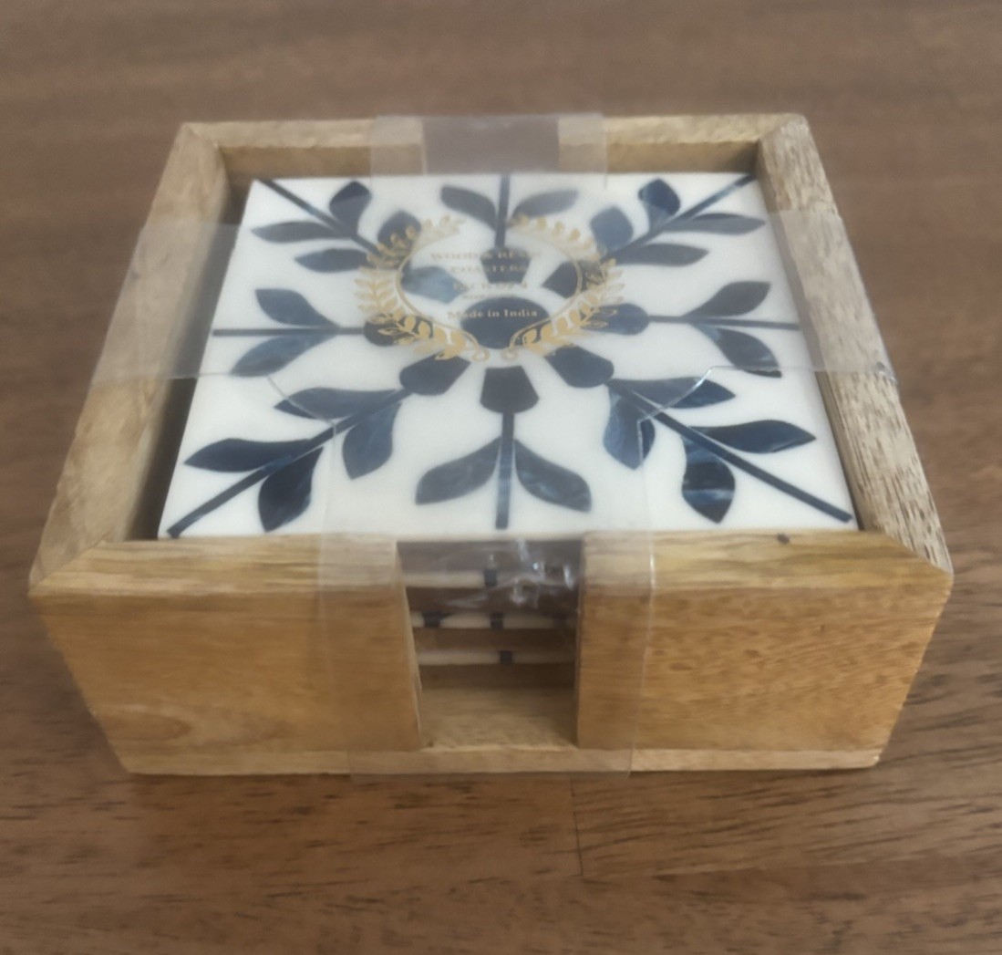 как выглядит Set Of Wood And Resin Coasters In Holder New фото