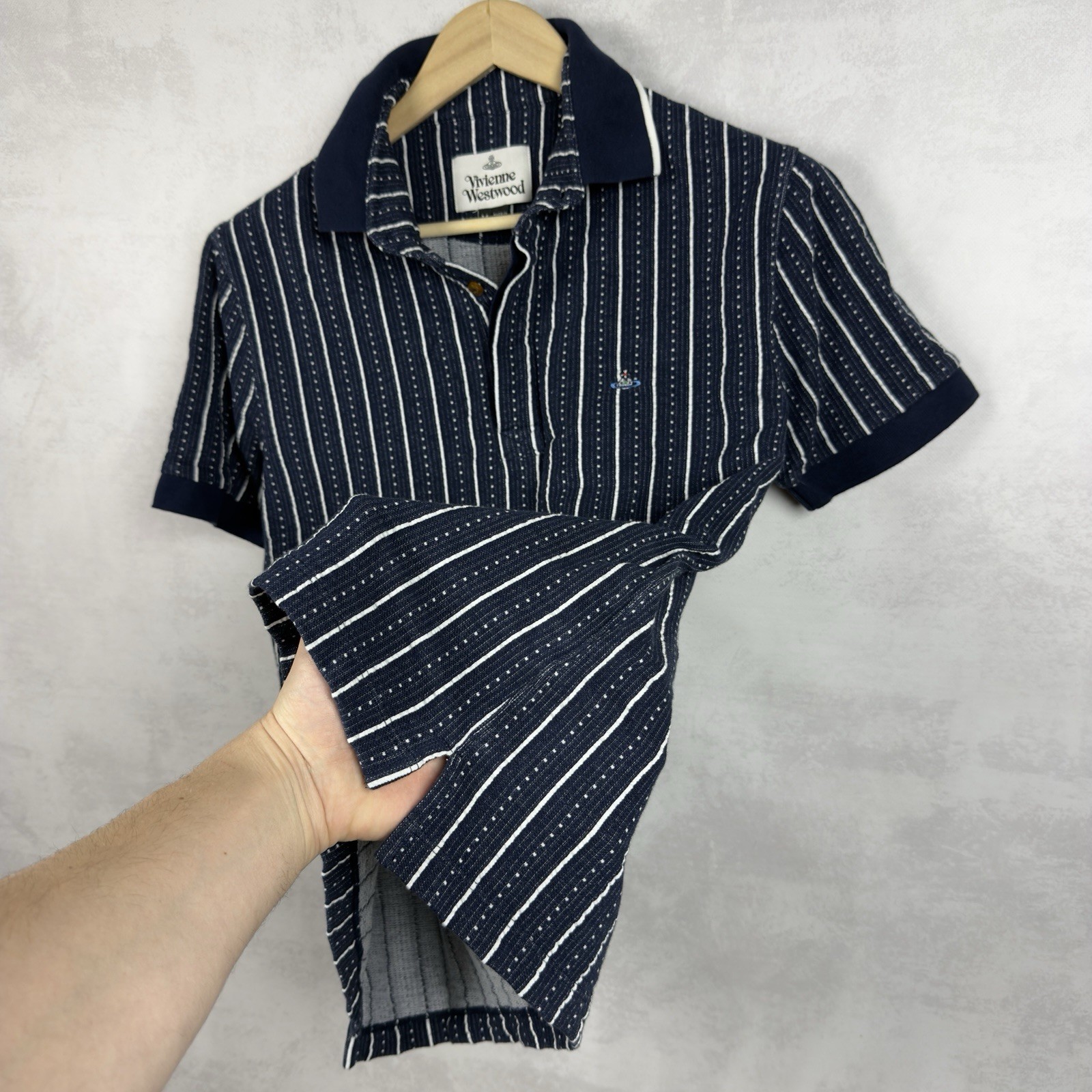как выглядит Vivienne Westwood Men s Retro Stripe Rare Cotton Polo Shirt Size M фото