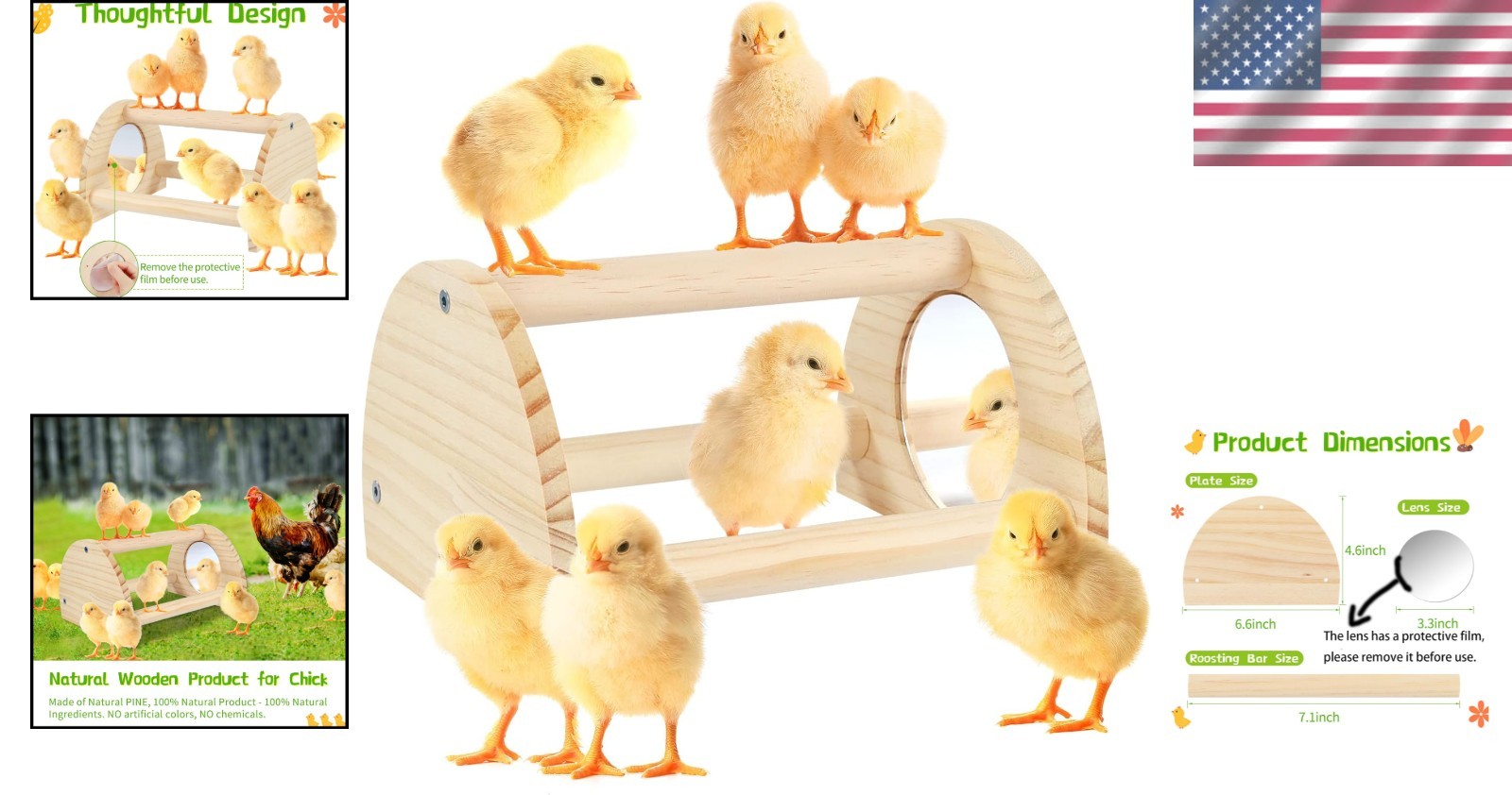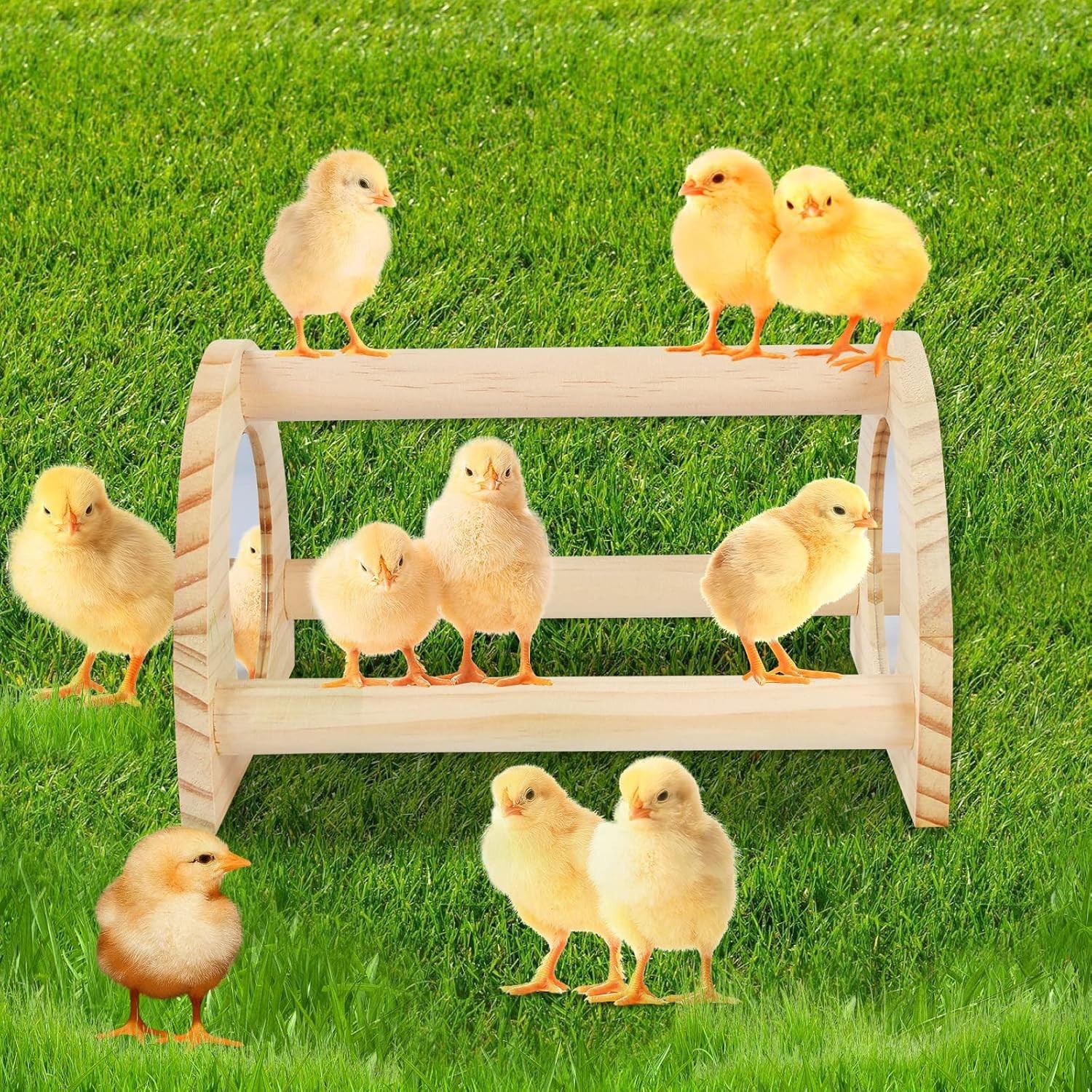 Natural Pine Chicken Perch with Mirror Jungle Gym for Large Birds