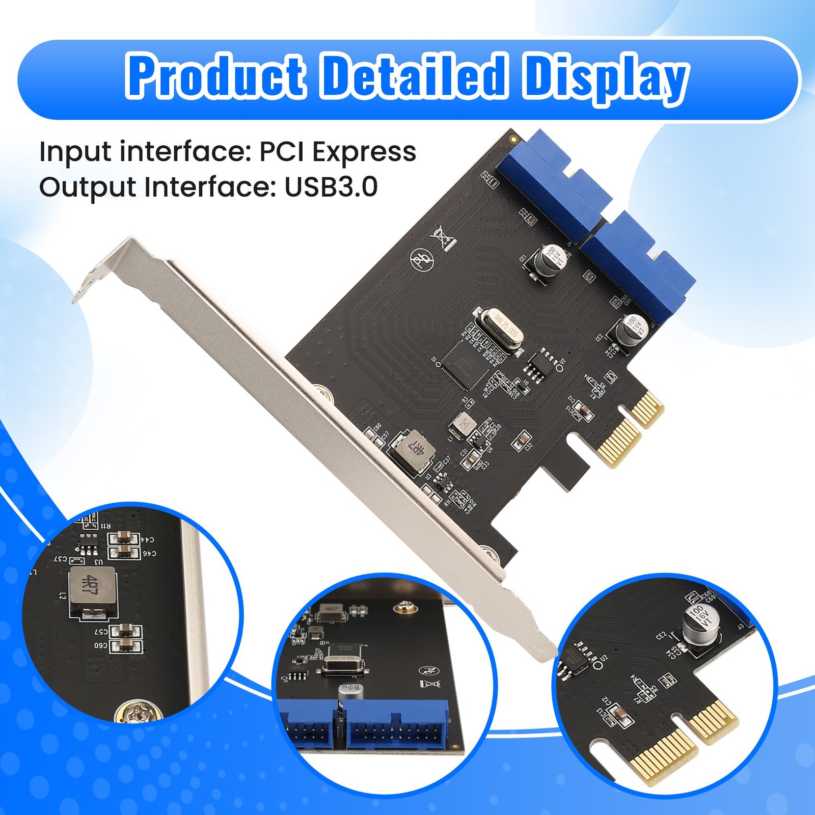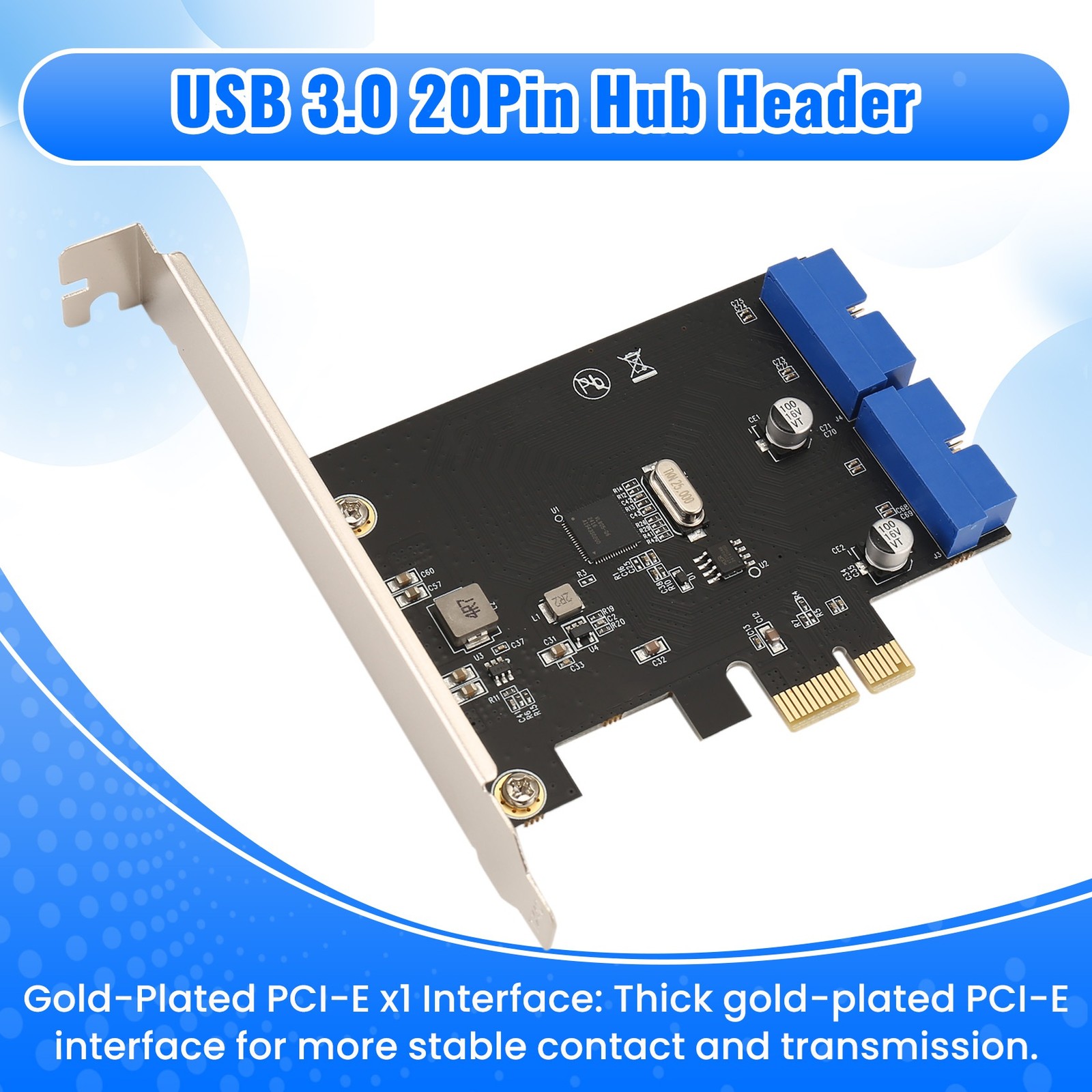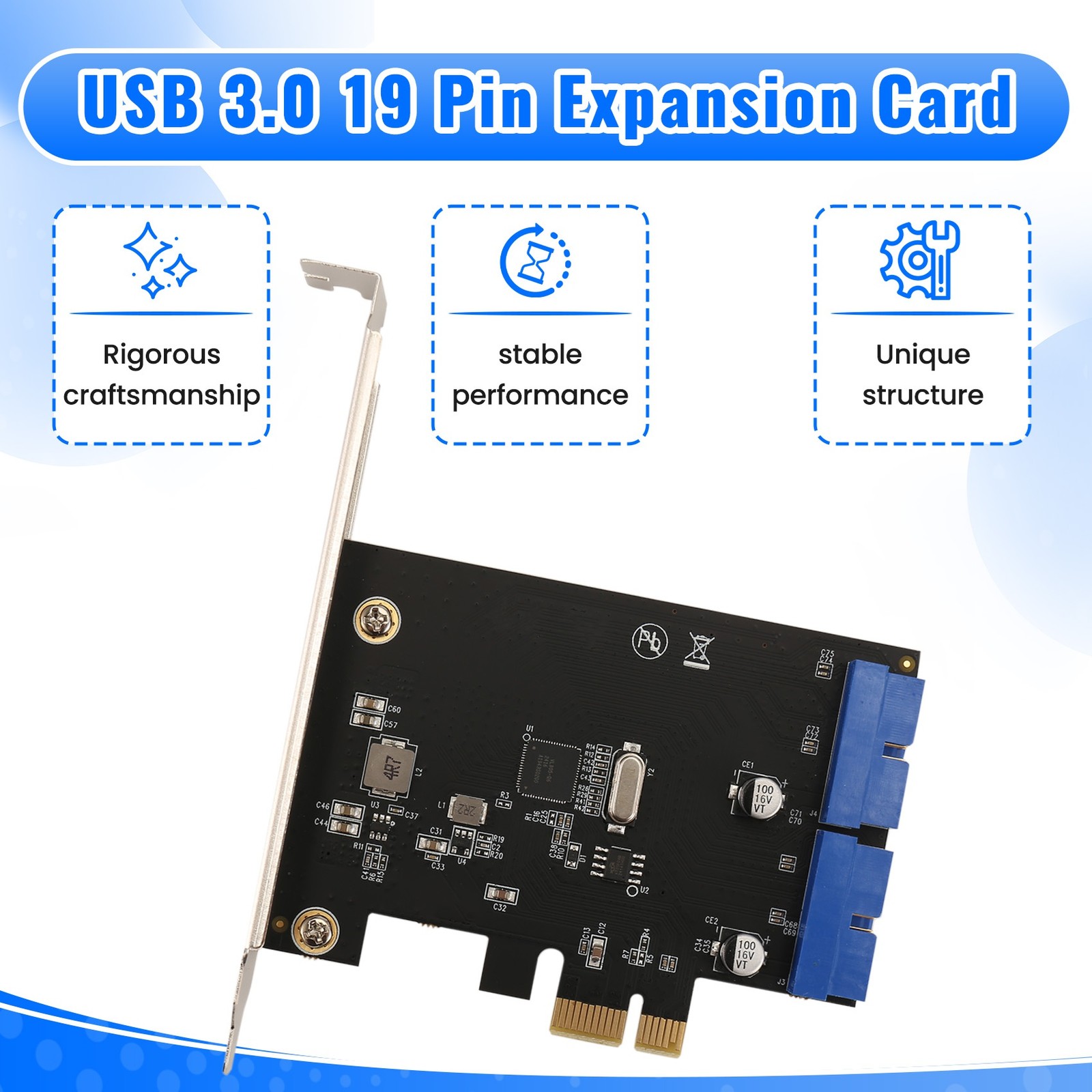 как выглядит PCI Express USB 3.0 19 Pin Expansion Card PCIE 1X to 2 Ports USB 3 19 Pin2223 фото