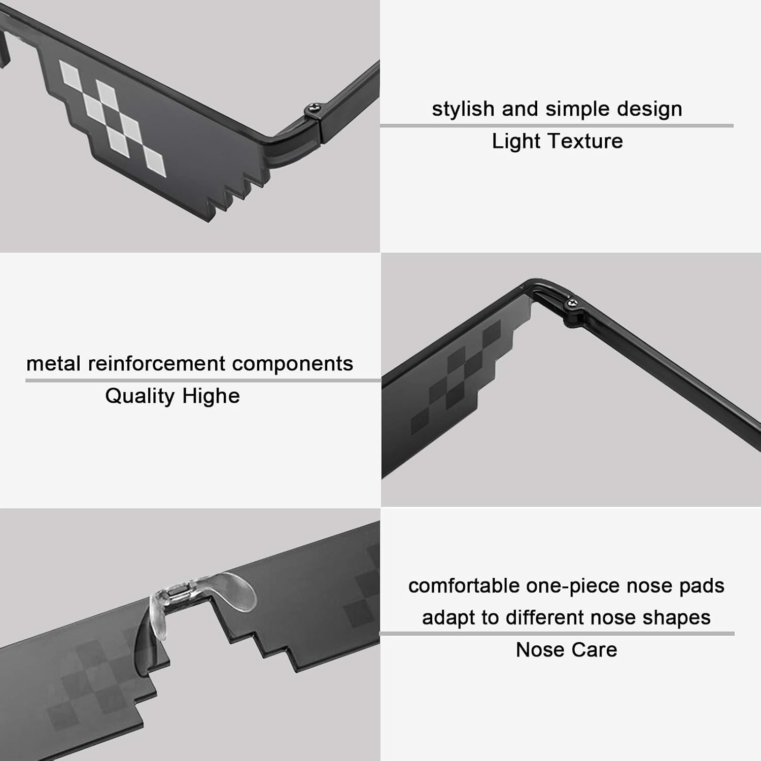 • 12 Pack Unisex Thug Life Party Sunglasses 8 Bits Style Pixel Mosaic Glasses